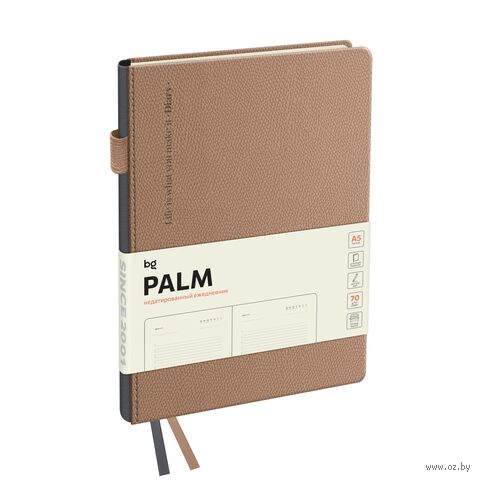 Ежедневник недатированный BG серии Palm – идеальный компаньон для стильной и организованной жизни. Пухлая обложка с мягкой прослойкой выполнена из экокожи пудрового цвета. Корешок в тон и мотивирующая фраза, нанесённая с помощью тиснения, придают стиль.