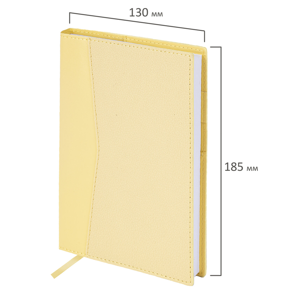 Внутренний блок включает 160 листов белой бумаги плотностью 70 г/м2. Каждая страничка имеет перфорированный угол. Благодаря компактному формату B6 (130х185 мм) ежедневник удобно использовать как в офисе, так и на выездных деловых встречах.
