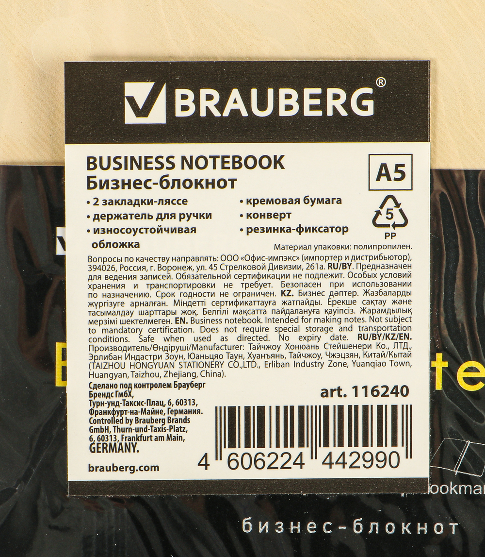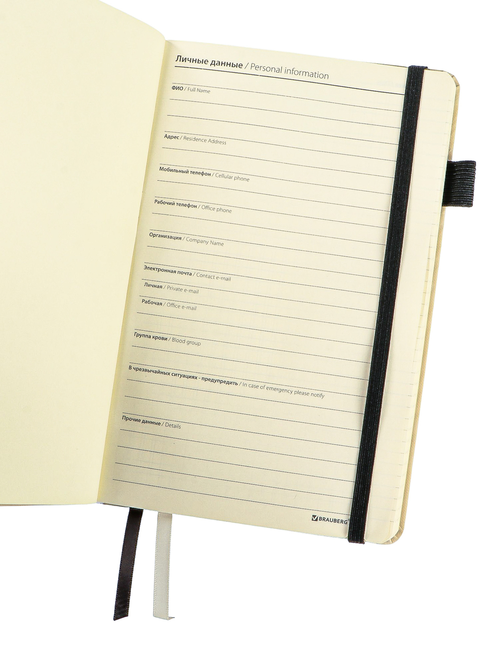 Снабжен резинкой-фиксатором, благодаря чему блокнот не откроется в сумочке или портфеле, и листы не помнутся. Дополнением являются 2 закладки-ляссе, с помощью которых при необходимости можно быстро открыть нужную страницу, а также держатель для ручки, повышающий функциональность блокнота. Имеется карман с внутренней стороны задней обложки для хранения записок и визиток. Формат блокнота А5 (138х213 мм) позволит владельцу поместить его в кейс или сумку малых габаритов.