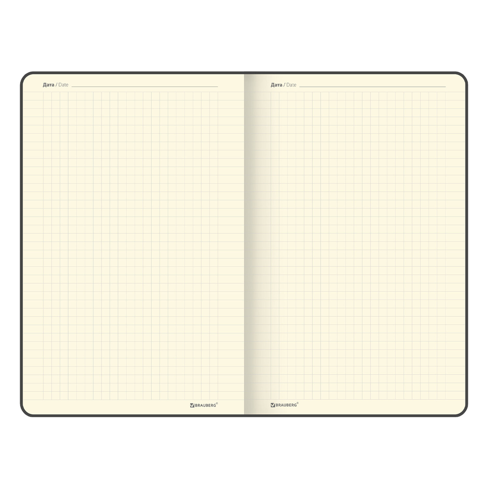 Твёрдая обложка стилизована под кожу с эффектом вельветового покрытия, очень тактильного на ощупь. Имеет закругленные уголки. Подходит для горячего тиснения. 80 листов позволят зафиксировать большой объем информации. Линовка блока в клетку (5х5 мм) дает возможность аккуратно заполнить цифровые значения, а также нанести чертежные зарисовки. Внутренний блок выполнен из офсета кремового цвета плотностью 70 г/м2 и крепится к обложке с помощью книжного переплета.