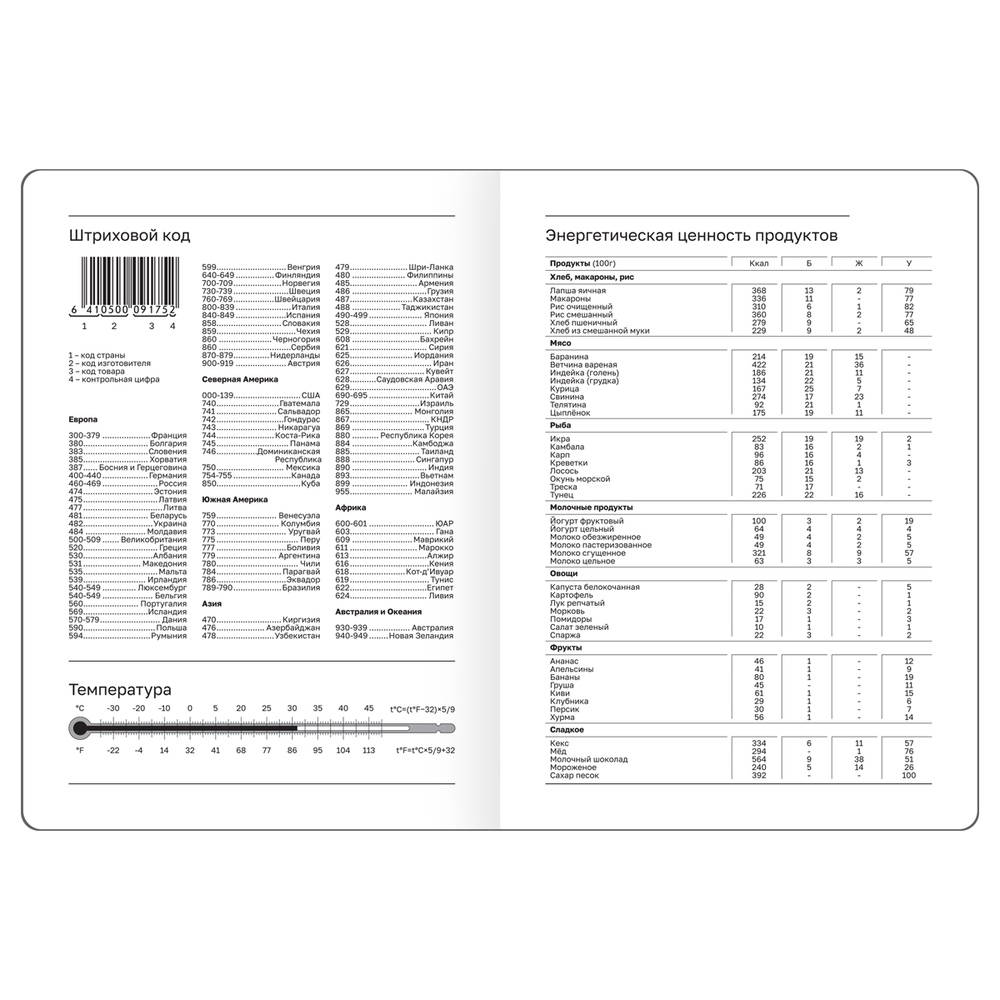 В ежедневнике предусмотрена справочная информация, ежемесячный планер, календарь и другие полезные сведения.