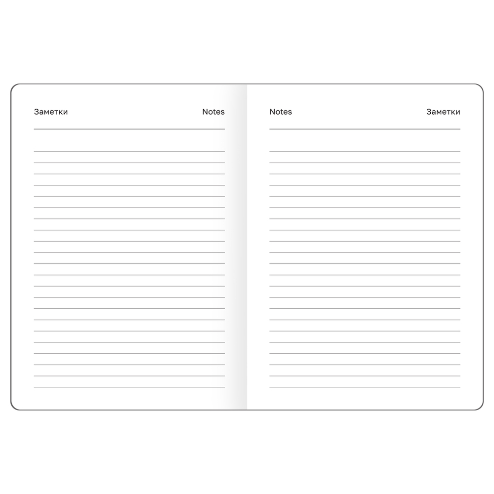 Изделие состоит из 176 листов белой бумаги плотностью 65 г/м2, которая подходит для любых типов ручек и не будет просвечиваться. В линованный блок с полем для даты и планингом удобно записывать встречи, идеи и задачи. Уголки листов с перфорацией. Закладка-ляссе позволит быстро и легко найти нужную страницу, что делает навигацию по ежедневнику удобной и эффективной.