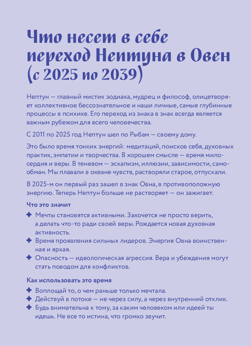 Приготовься, твой управитель Нептун в 2026 соединиться с суровым наставником – Сатурном. Предстоит период продуктивной работы над собой. Ты научишься слышать внутренний голос и отделять его от чужого мнения. А маленькие личностные открытия окажутся куда важнее громких слов и карьерных перемен.