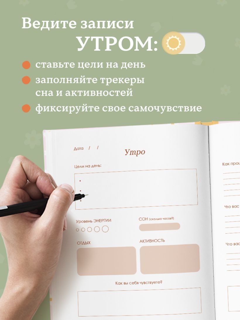 Этот ежедневник создан, чтобы помочь вам сохранять баланс, отслеживать эмоции и находить радость в каждом дне.