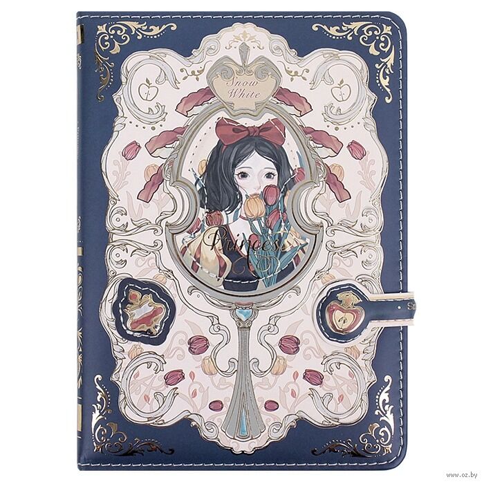 Компактный размер 11,6х16,5см, формат чуть больше А6, удобен для любой сумочки и школьного рюкзака. Обложка – кожзам с тиснением "золото", тип бумаги-офсет, закладка (ляссе), магнитная застежка. На обложке – Белоснежка.