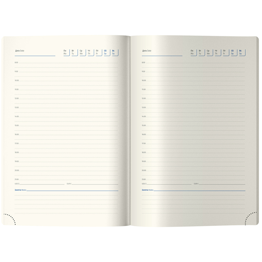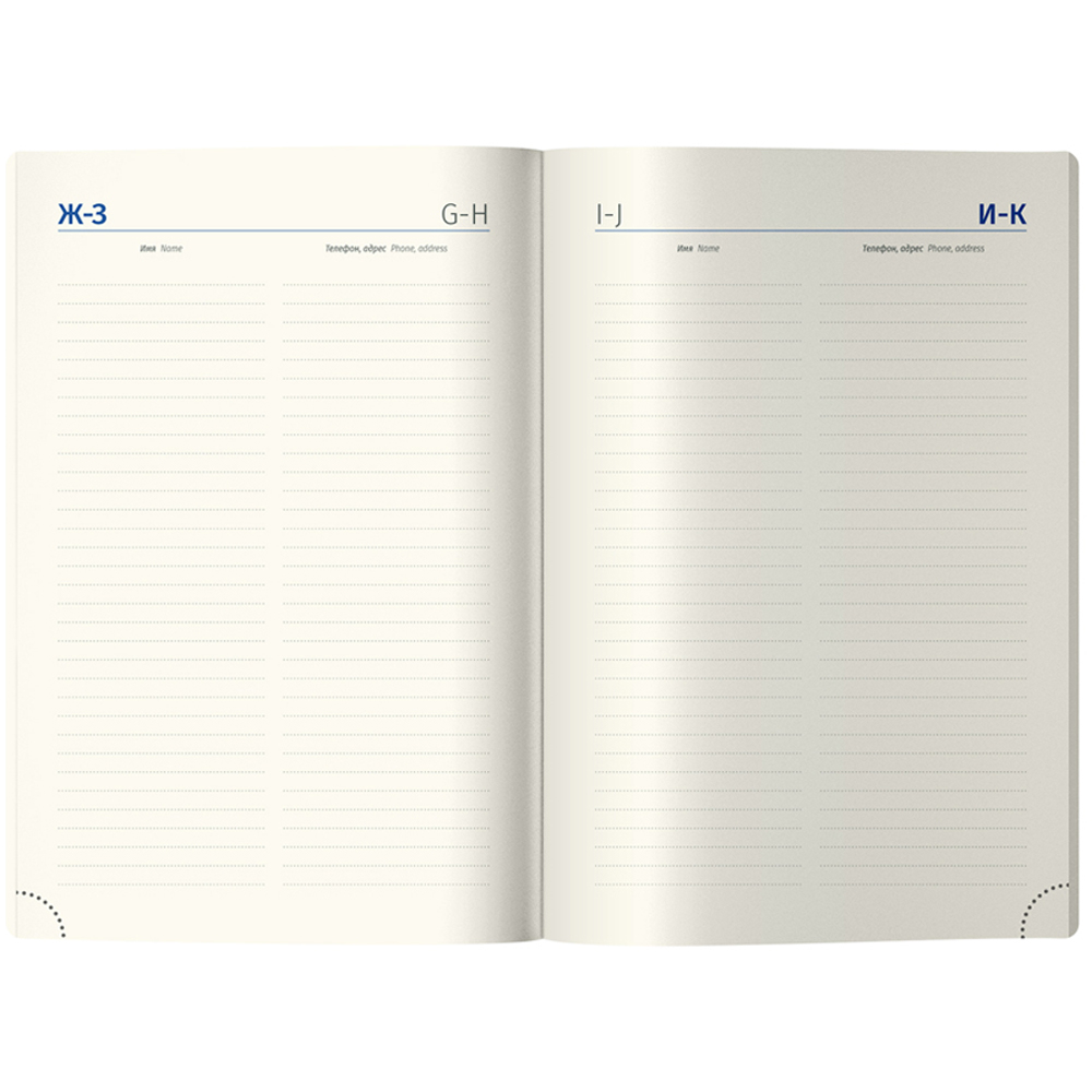 Перфорированные уголки, справочная информация и 2 закладки-ляссе сделают использование ежедневника комфортным. Внутри располагаются отрывные заметки, бланки извещения о ДТП и справочные материалы.