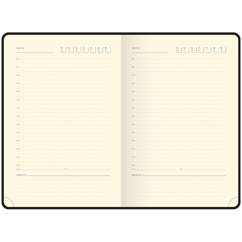 Ежедневник – это нескучный помощник по планированию дел. Записи помогут разгрузить мозг от поступающей информации, напомнят о мероприятиях, предостерегут от необоснованной траты времени. В полезном и удобном блокноте удобно формировать намеченные дела по степени важности и срочности, вносить быстрые пометки. Этот красивый ежедневник вместит записи о важных делах, днях рождения, встречах, покупках.