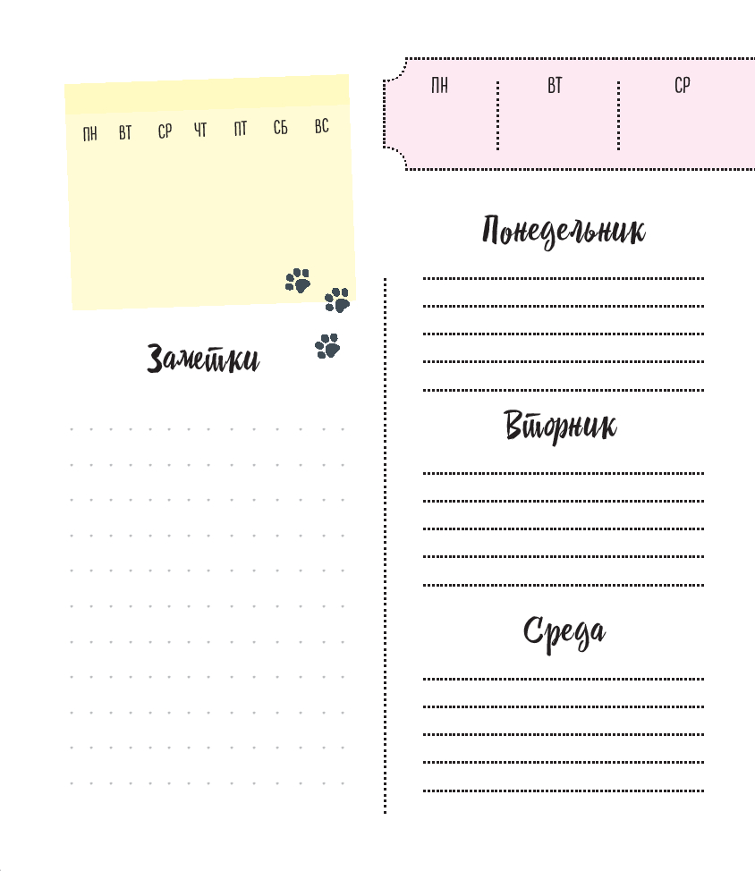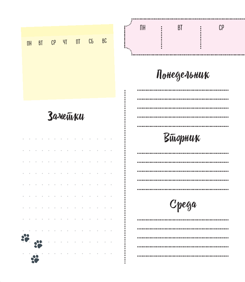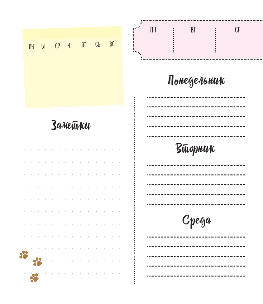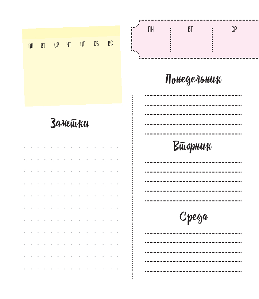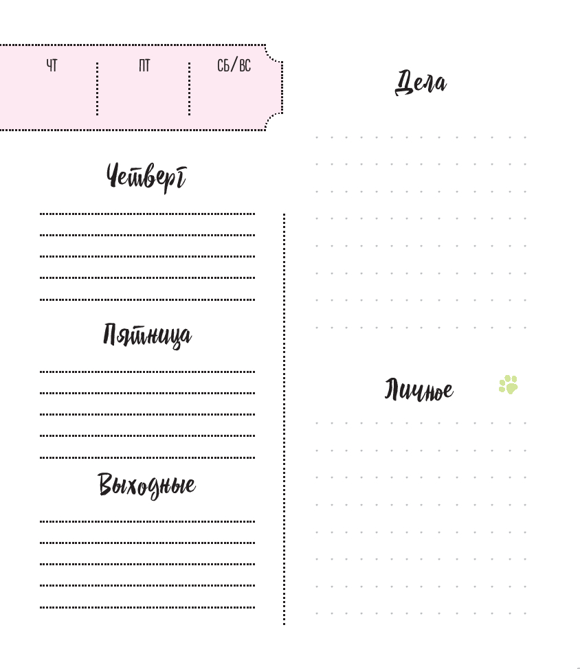 Записывайте все свои планы, выгружайте из мозга лишние мысли на специальных страничках. Сияйте и не бойтесь показаться too much!