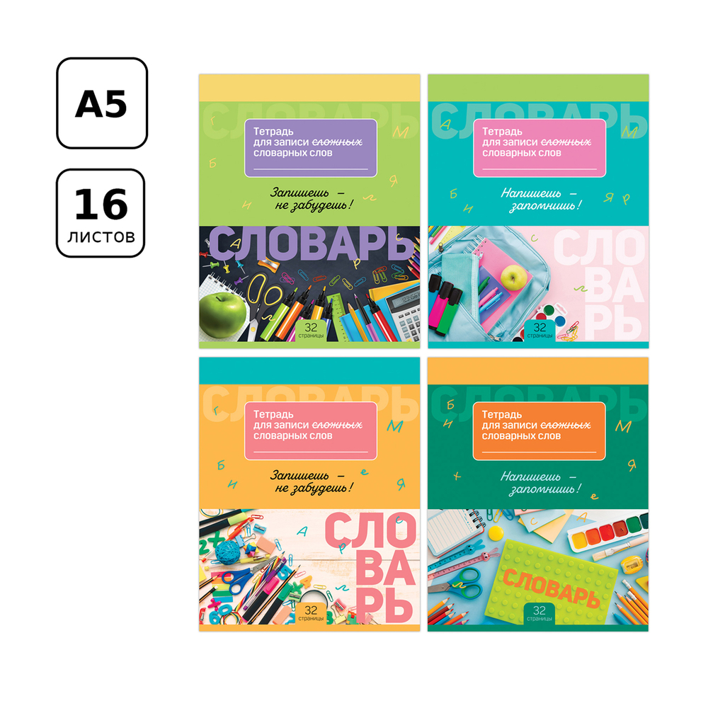 Тетрадь-словарик для записи словарных слов предназначена для записи слов с непроверяемыми гласными и согласными в корне, а также для слов, которые трудны в написании.