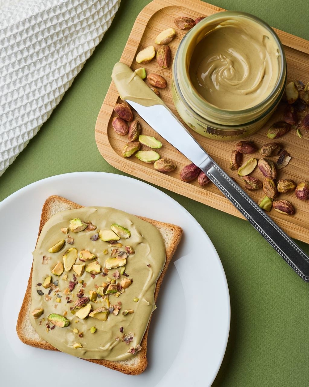 Сахар, фисташки жареные тертые, жир кондитерский (рафинированные дезодорированные растительные масла: ши, рапсовое, соевое, полностью гирогенезированное пальмовое), сыворотка молочная сухая, молоко сухое обезжиренное, заменитель молочного жира (рафинированнык дезодорированные растительные масла: пальмовое, подсолнечное, соевое, рапсовое), семена тыквы жаренные тертые, эмульгатор лецитин соевый, соль пищевая, ароматизатор ванилин, фисташка. Содержит орехи, продукты переработки сои и молока.