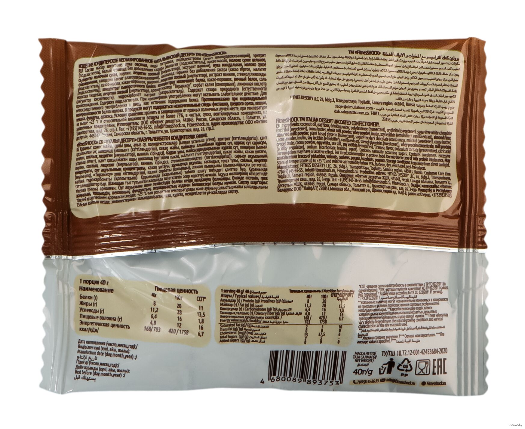 | Изготовитель | Общество с ограниченной ответственностью "Фитнес десерты", 445043 Самарская обл., г. Тольятти, ул. Трапспортная, влд. 26, стр. 3. |