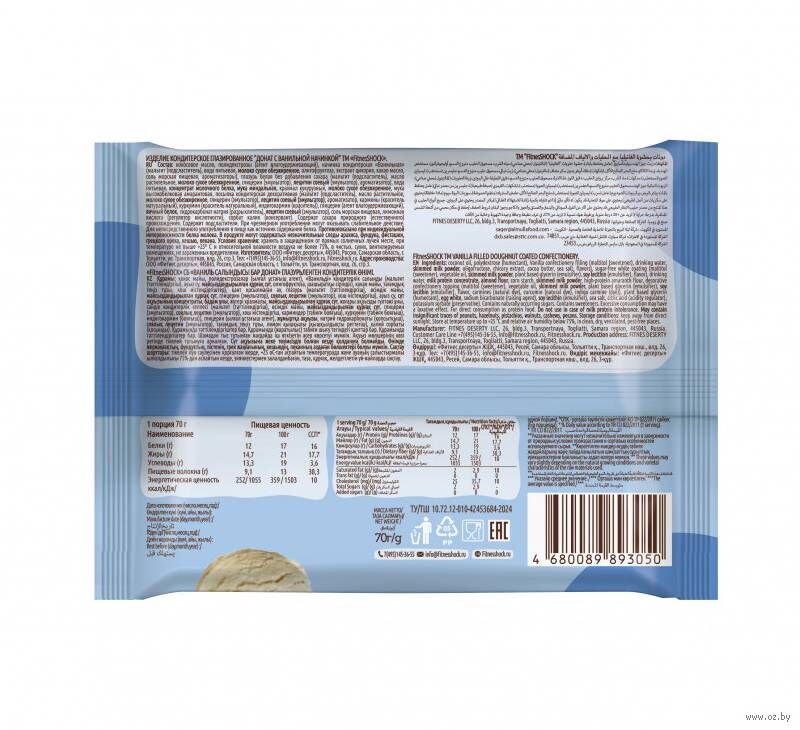 | Изготовитель | Общество с ограниченной ответственностью "Фитнес десерты", 445043 Самарская обл., г. Тольятти, ул. Трапспортная, влд. 26, стр. 3. |