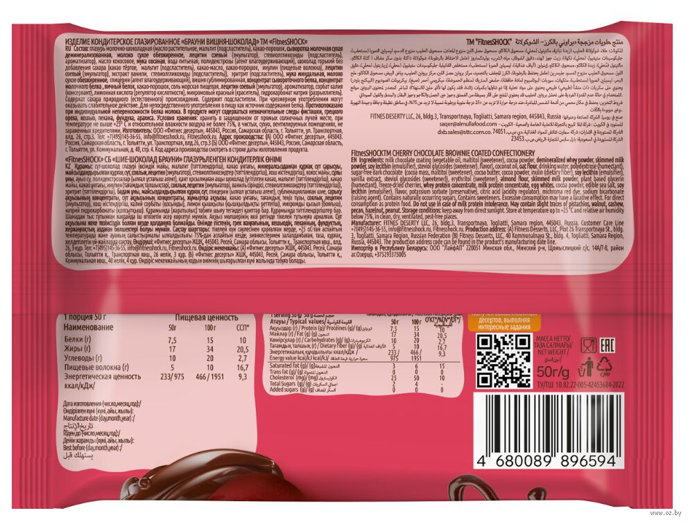 | Изготовитель | Общество с ограниченной ответственностью "Фитнес десерты", 445043 Самарская обл., г. Тольятти, ул. Трапспортная, влд. 26, стр. 3. |