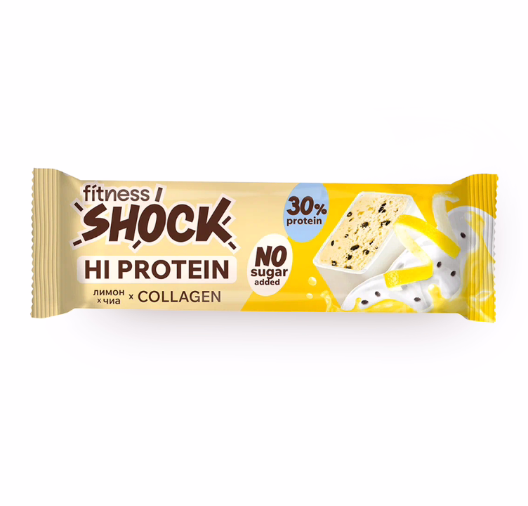Изомальтоолигосахарид, концентрат молочного белка, концентрат сывороточного белка, глазурь белая без добавления сахара (мальтит (подсластитель), масло растительное, молоко сухое обезжиренное, глиц глицерин (эмульгатор), лецитин соевый (эмульгатор), ароматизатор), лимон (цукаты), вода питьевая, полидекстрозы (агент влагоудерживающий), масло кокосовое, семена чиа, глицерин (агент влагоудерживающий), лимонная кислота (регулятор кислотности), соль морская пищевая, ароматизатор, сорбит (агент влагоудерживающий), сорбат калия (консервант), коллаген говяжий гидролизованный. Содержат сахара природного (естественного) происхождения. Содержит подсластители.