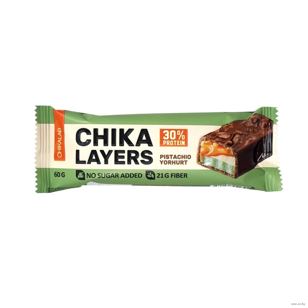 CHIKA LAYERS это полезный и невероятный батончик, в составе которого нет сахара, 18 грамм белка на одну порцию, 21 грамм дополнительной клетчатки.