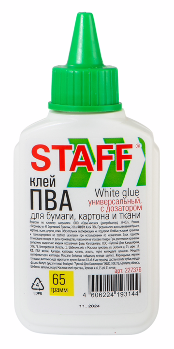 Клей ПВА применяется для склеивания бумаги, картона, фотографий, дерева.