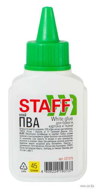 Клей ПВА применяется для склеивания бумаги, картона, фотографий, дерева.