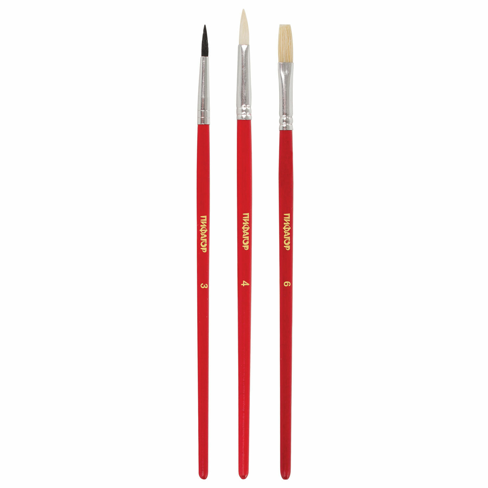 Кисти №4 и 6 позволят делать более крупные мазки и линии. Разный тип ворса кисти позволяет работать с различными видами красок в разных техниках рисования. Деревянную лакированную рукоятку кисти удобно держать в руке.