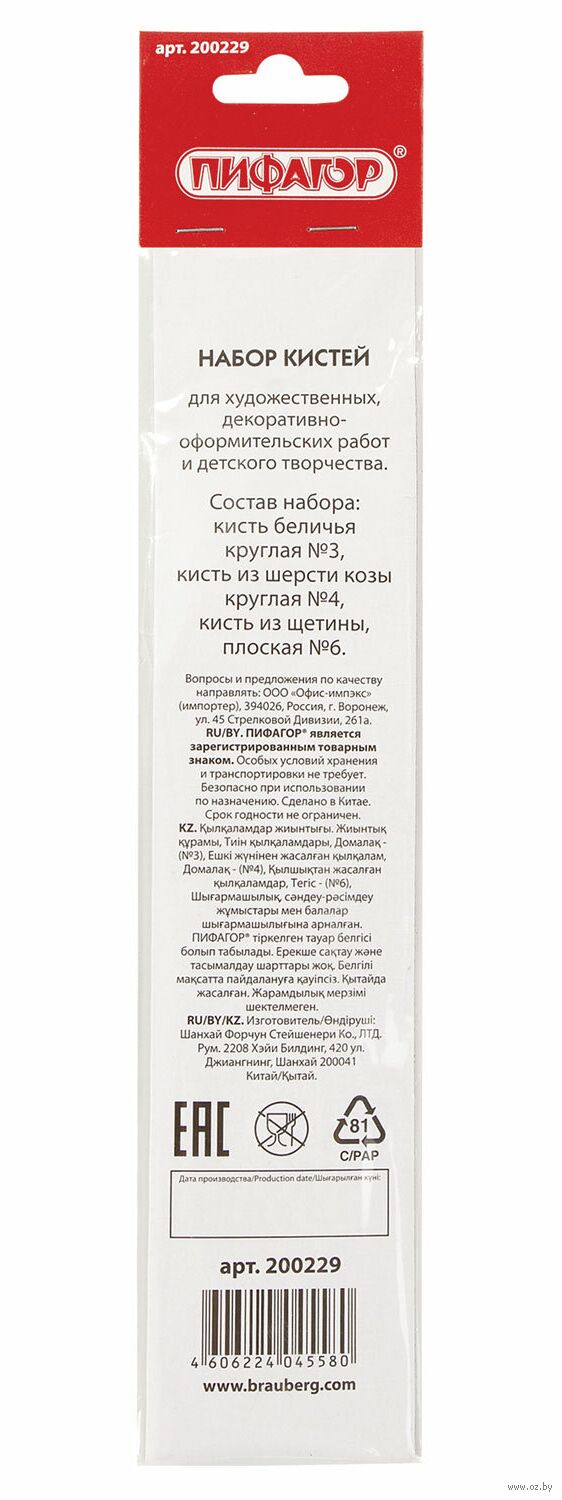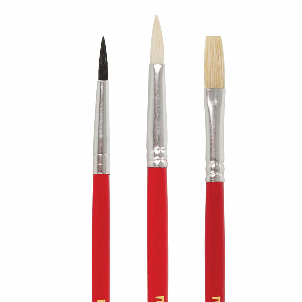 Набор из трех кистей разного размера и типа предназначен для детского творчества в образовательных учреждениях и дома.