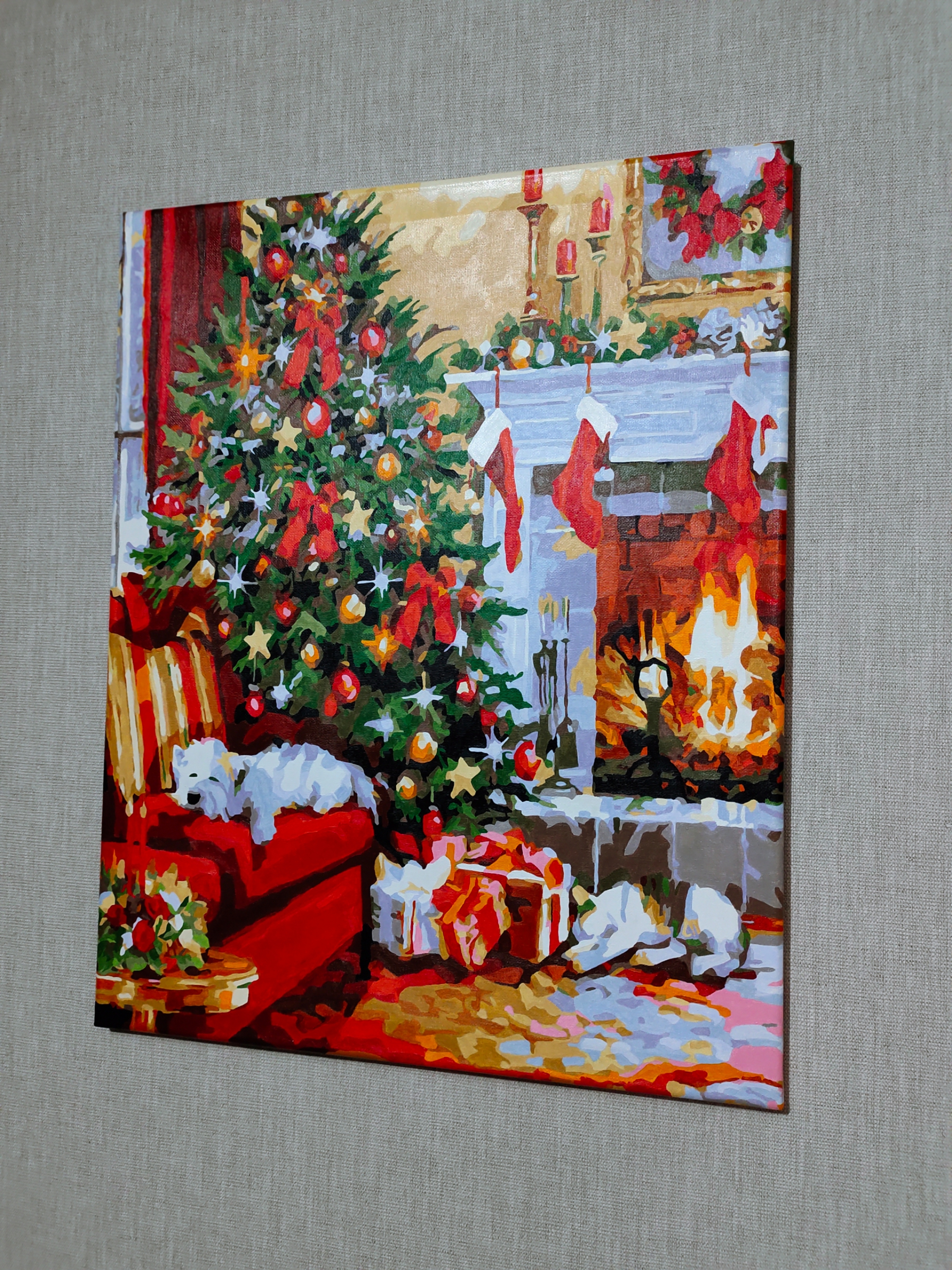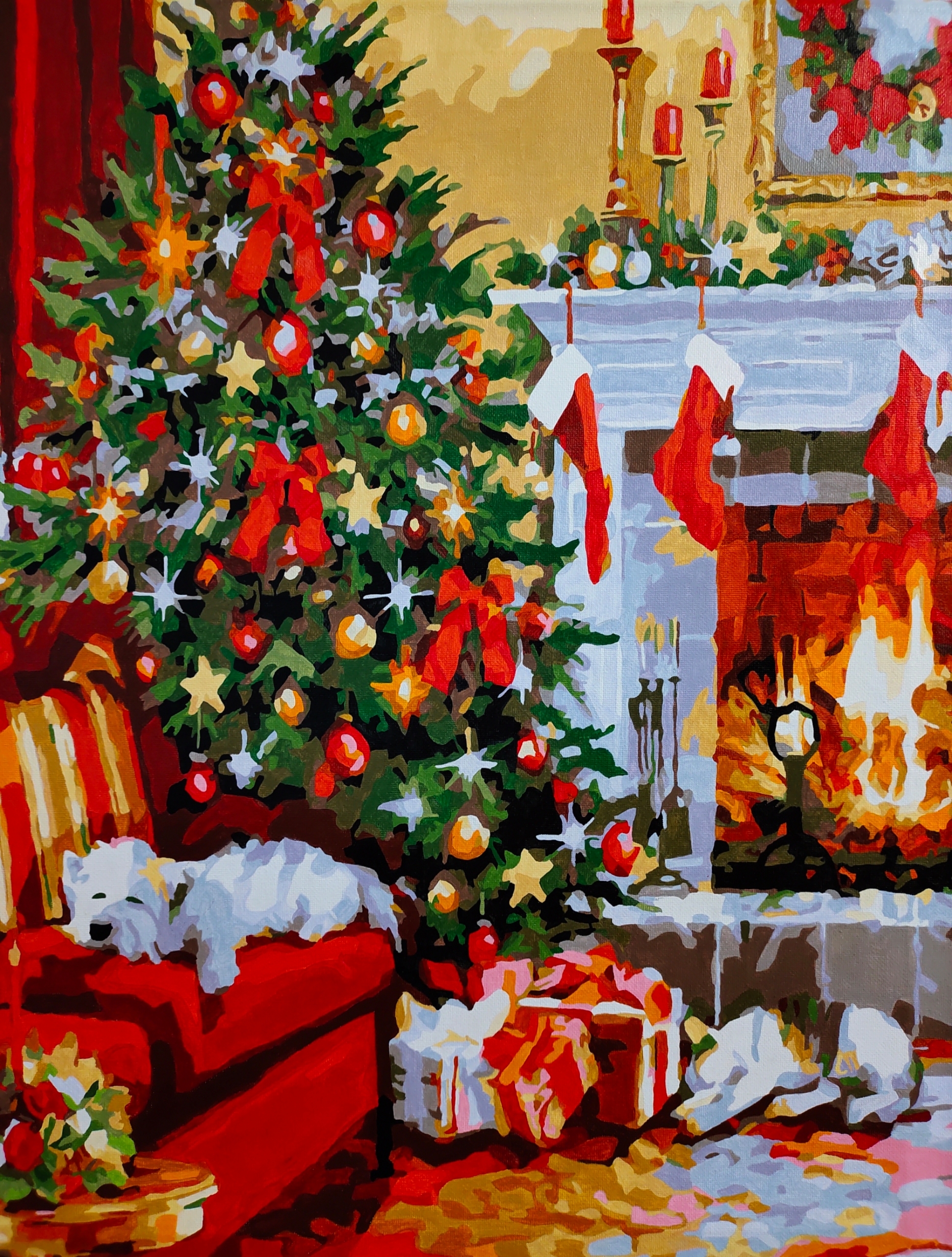Это была седьмая или восьмая по счету моя картина) и она оказалась самой тяжёлой! Рисовать её было очень, очень трудно! Краски ещё на полпути стали засыхать, хотя раньше, с другими картинами, такого не было. Краски яркие, много оттенков, красивые. Так как мне удобно рисовать на коленках - немного растянулось полотно. Номерки я всегда стираю, чтобы не просвечивались из-под краски. Не на каждом полотне это возможно сделать, но в данном случае - всё легко. В результате, конечно, получилась очень яркая, живая, красивая картина!