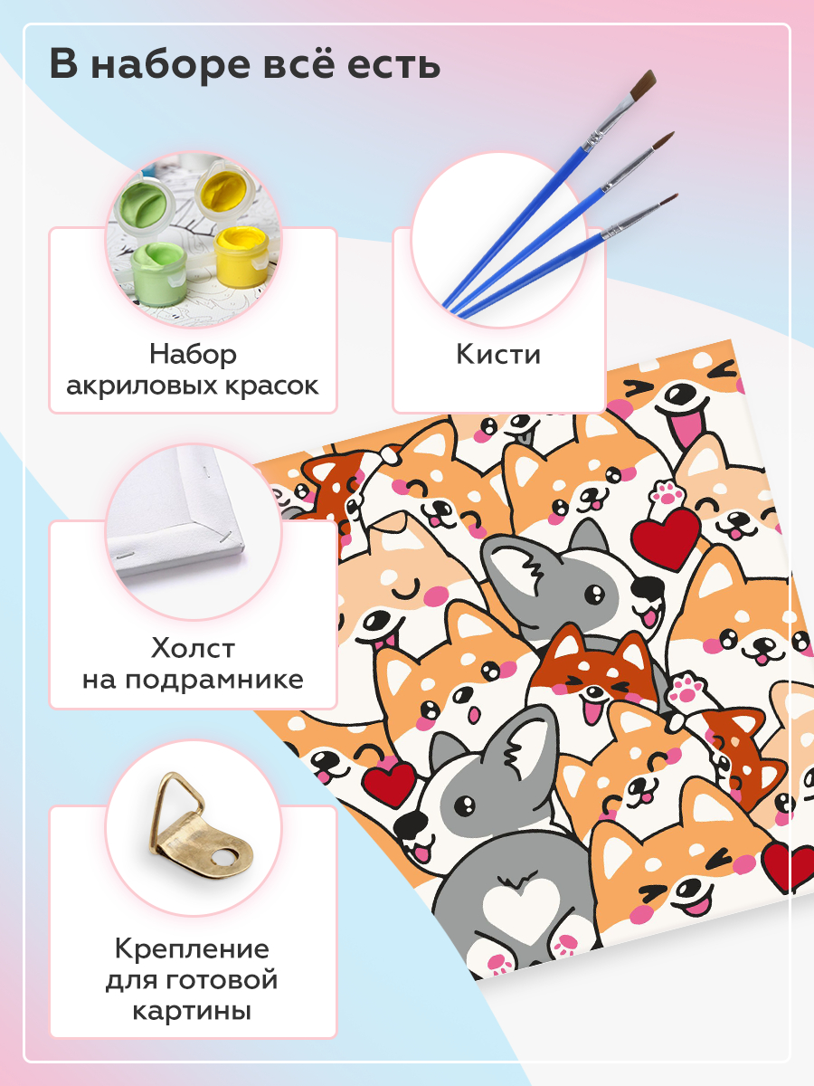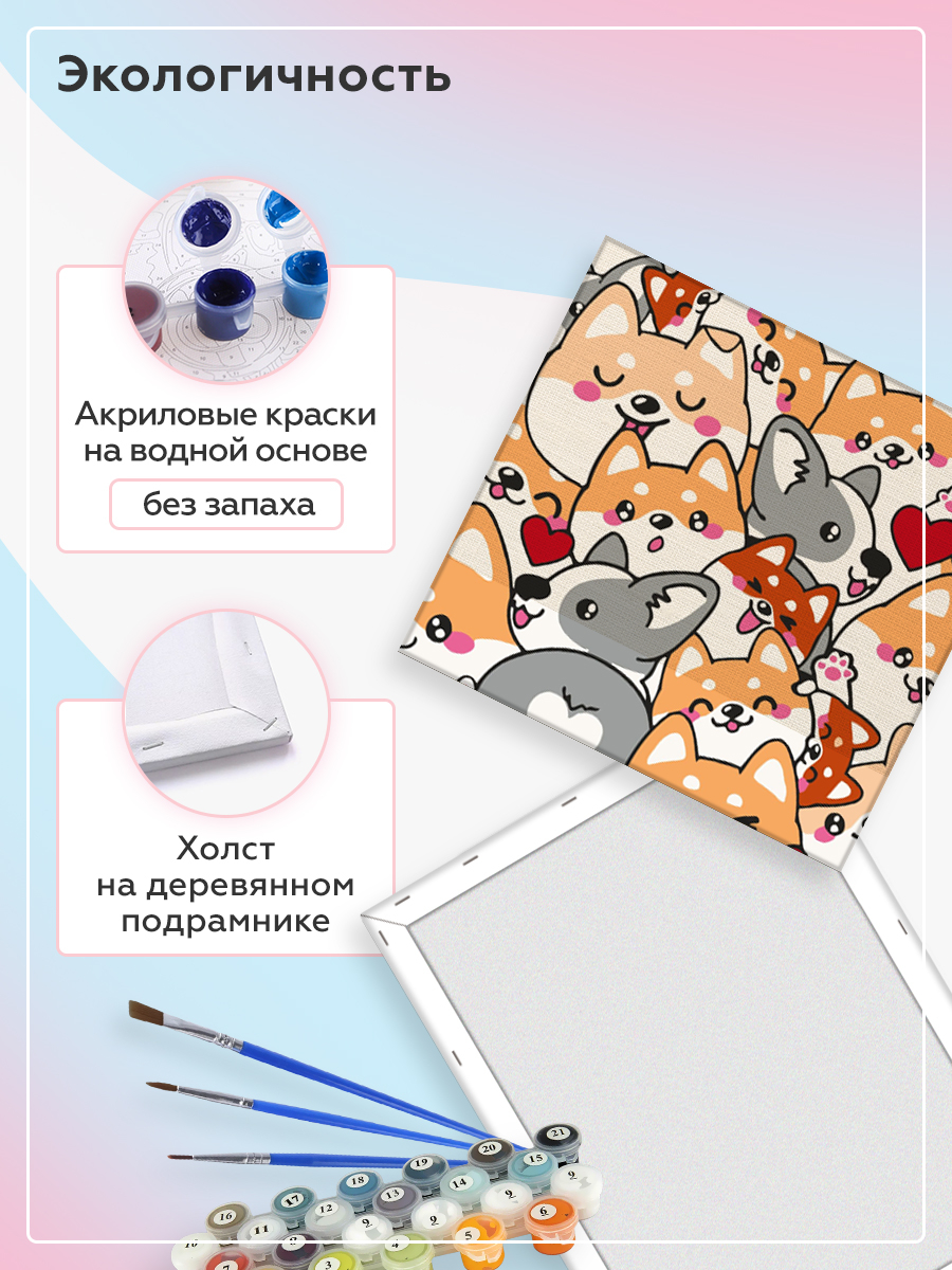 Картина по номерам "Корги, корги, корги..." (200х200 мм)