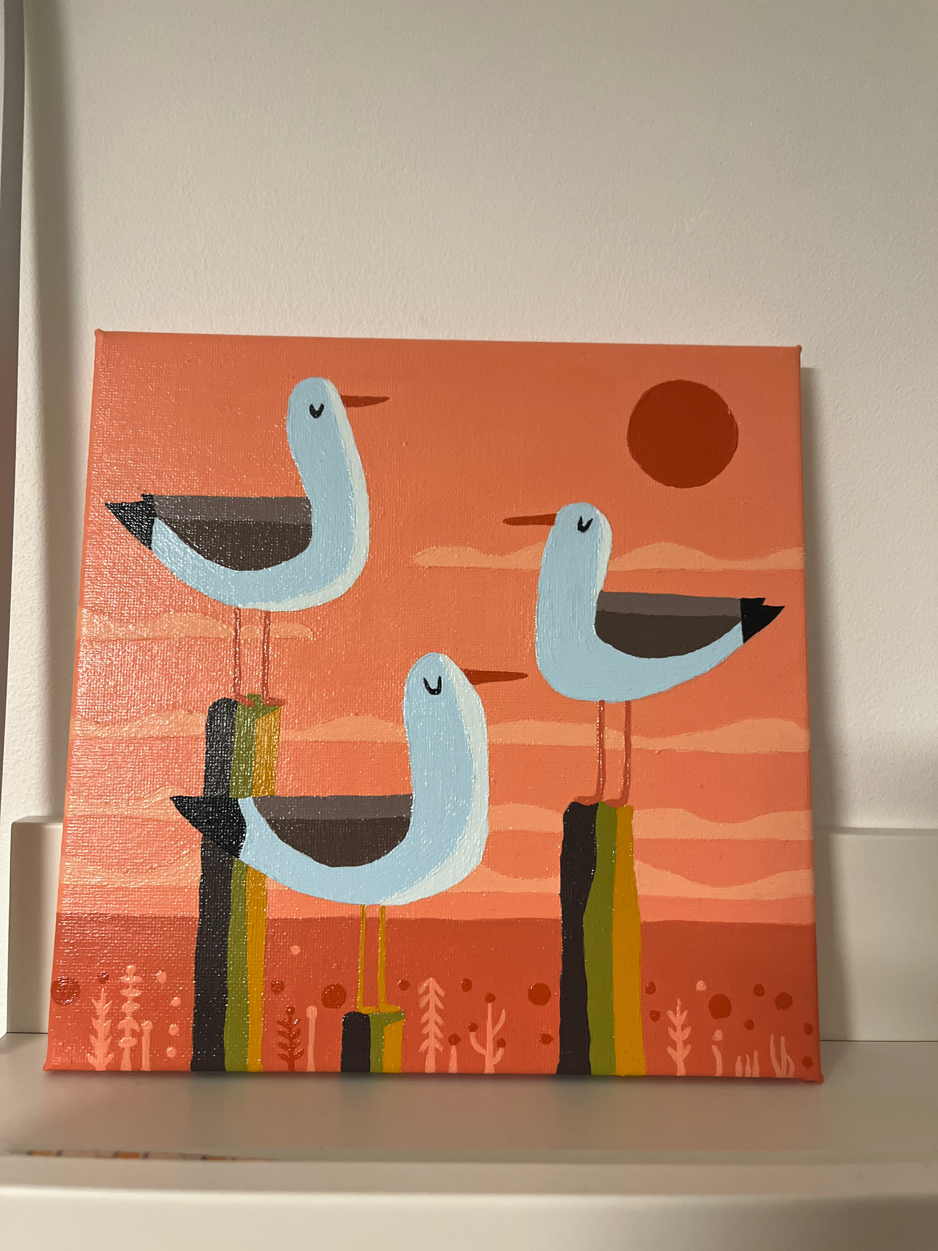 Картина по номерам "Чайки на закате" (200х200 мм)