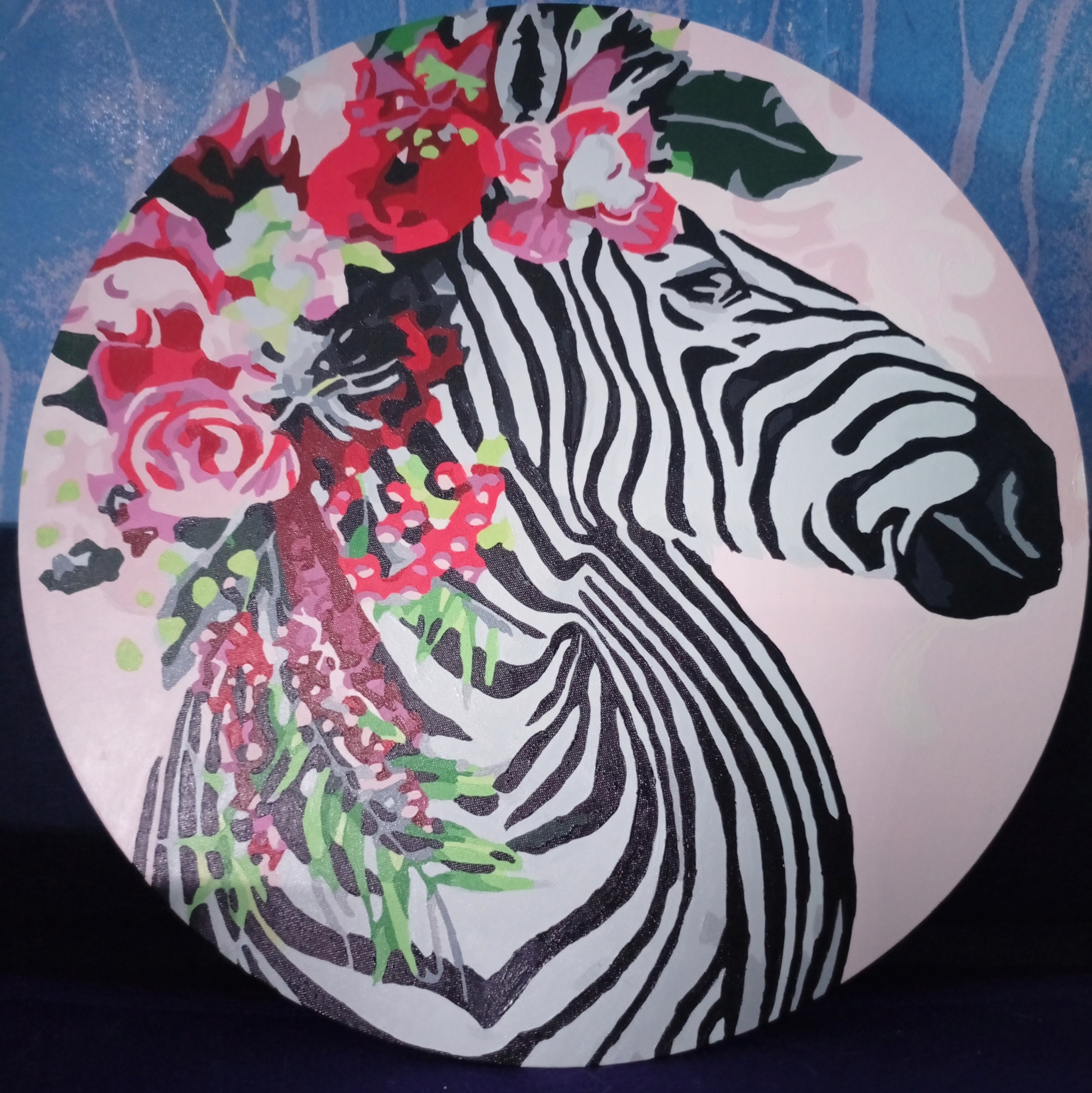 Картина по номерам "Прекрасная зебра" (400х400 мм)