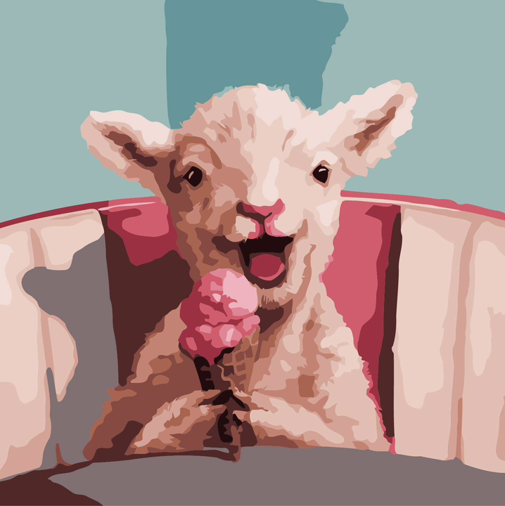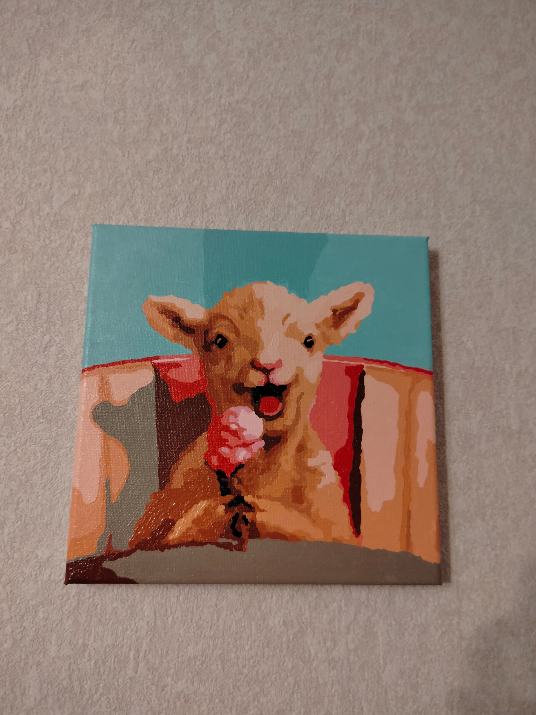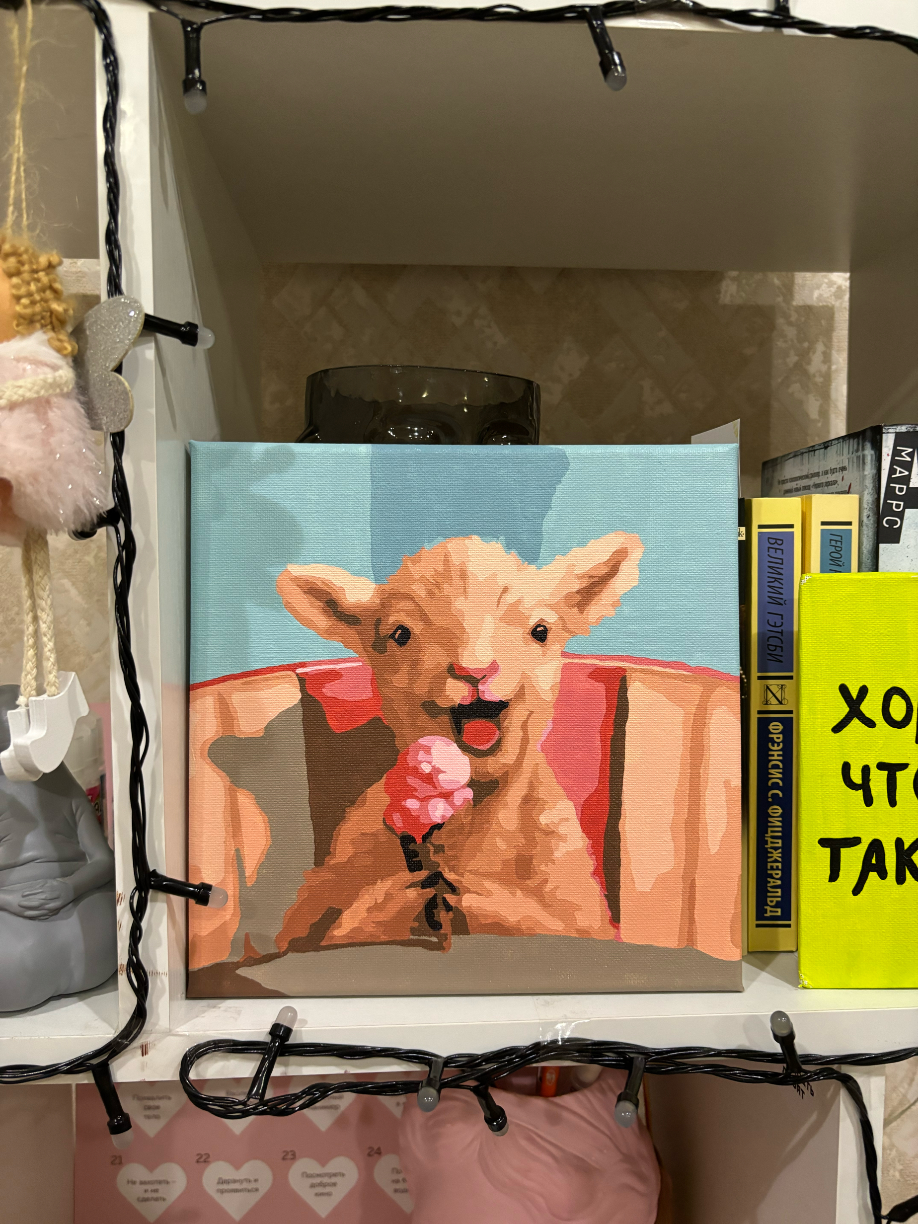 Картина по номерам "Ягнёнок с мороженым" (200х200 мм)