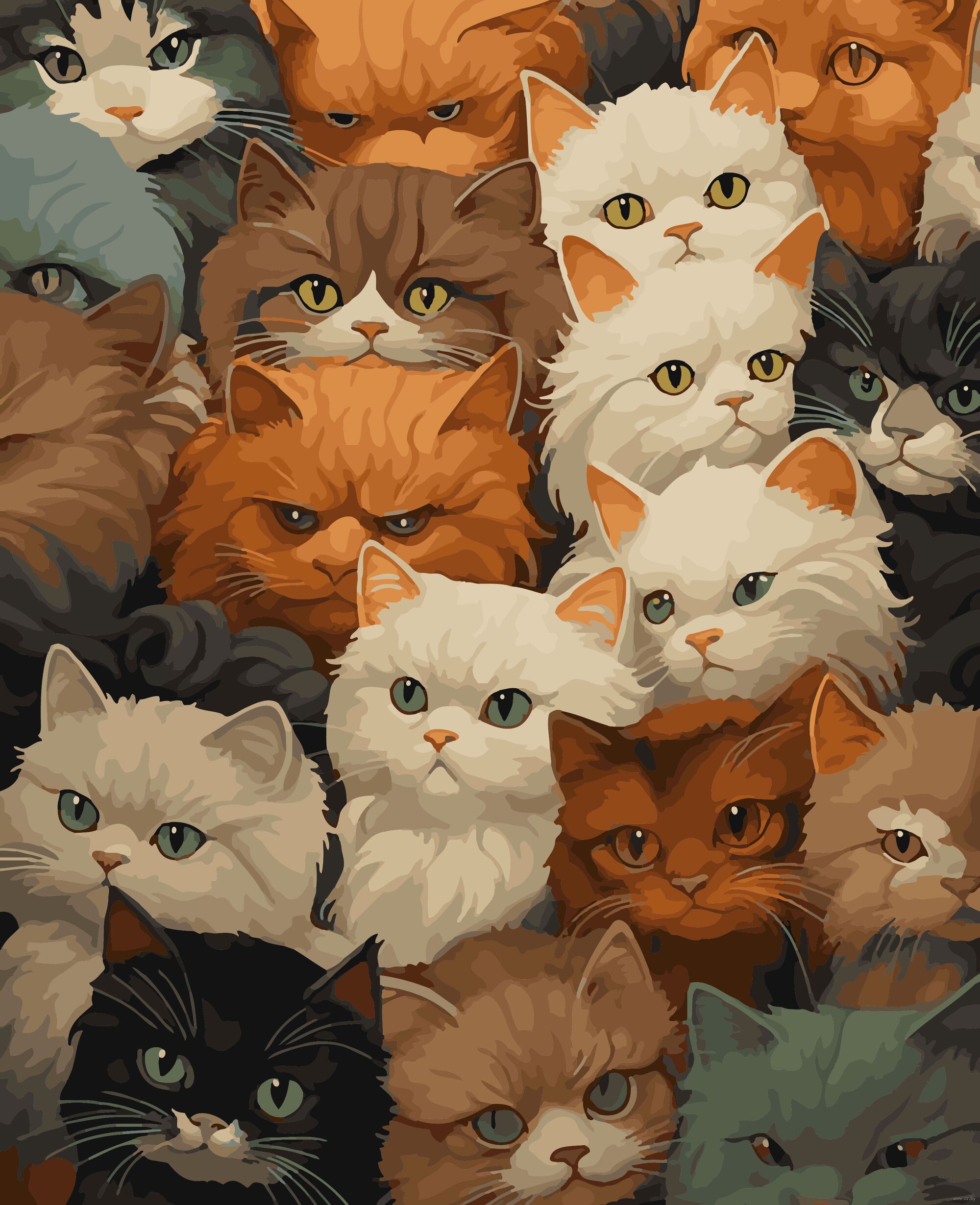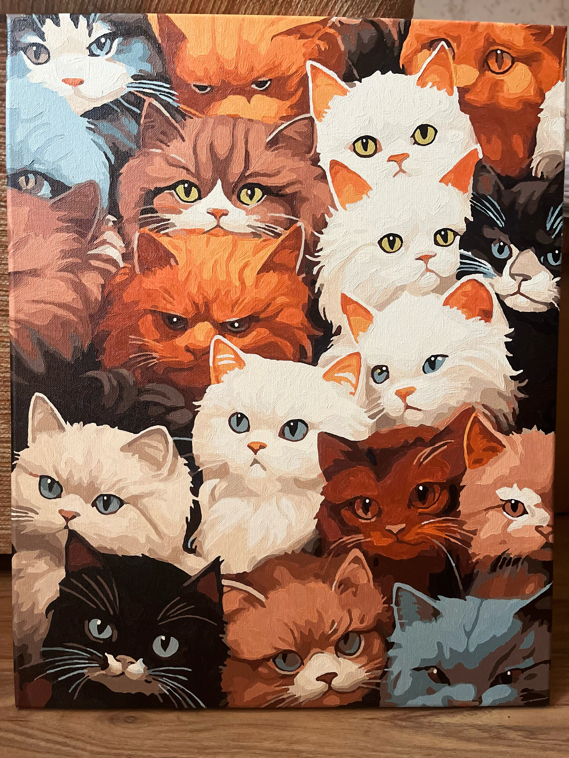 Первая моя картина со сложностью 5/5. Получила большое удовольствие, пока рисовала. Котики получились ну очень красивые))