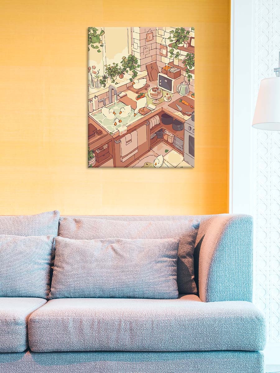 В набор входит холст с черно-белой цифровой разметкой. Каждой краске в наборе соответствует свой номер. Необходимо просто аккуратно нанести краски на участки с соответствующими цифрами. И так постепенно будет проявляться будущий шедевр.