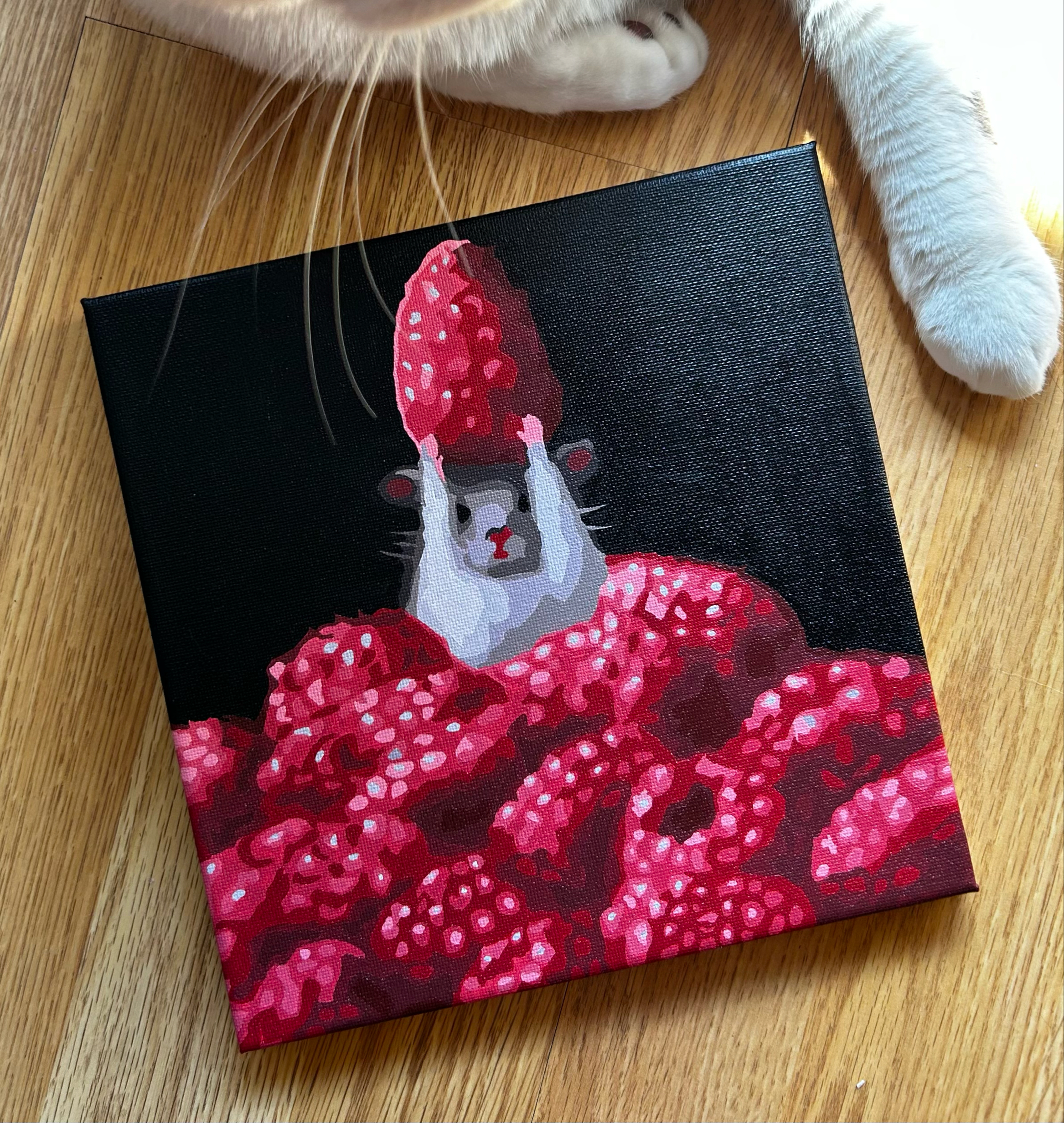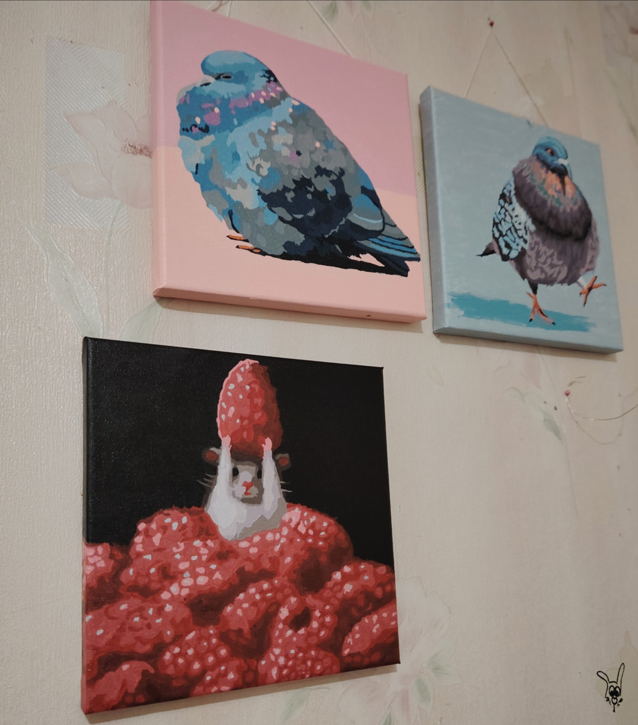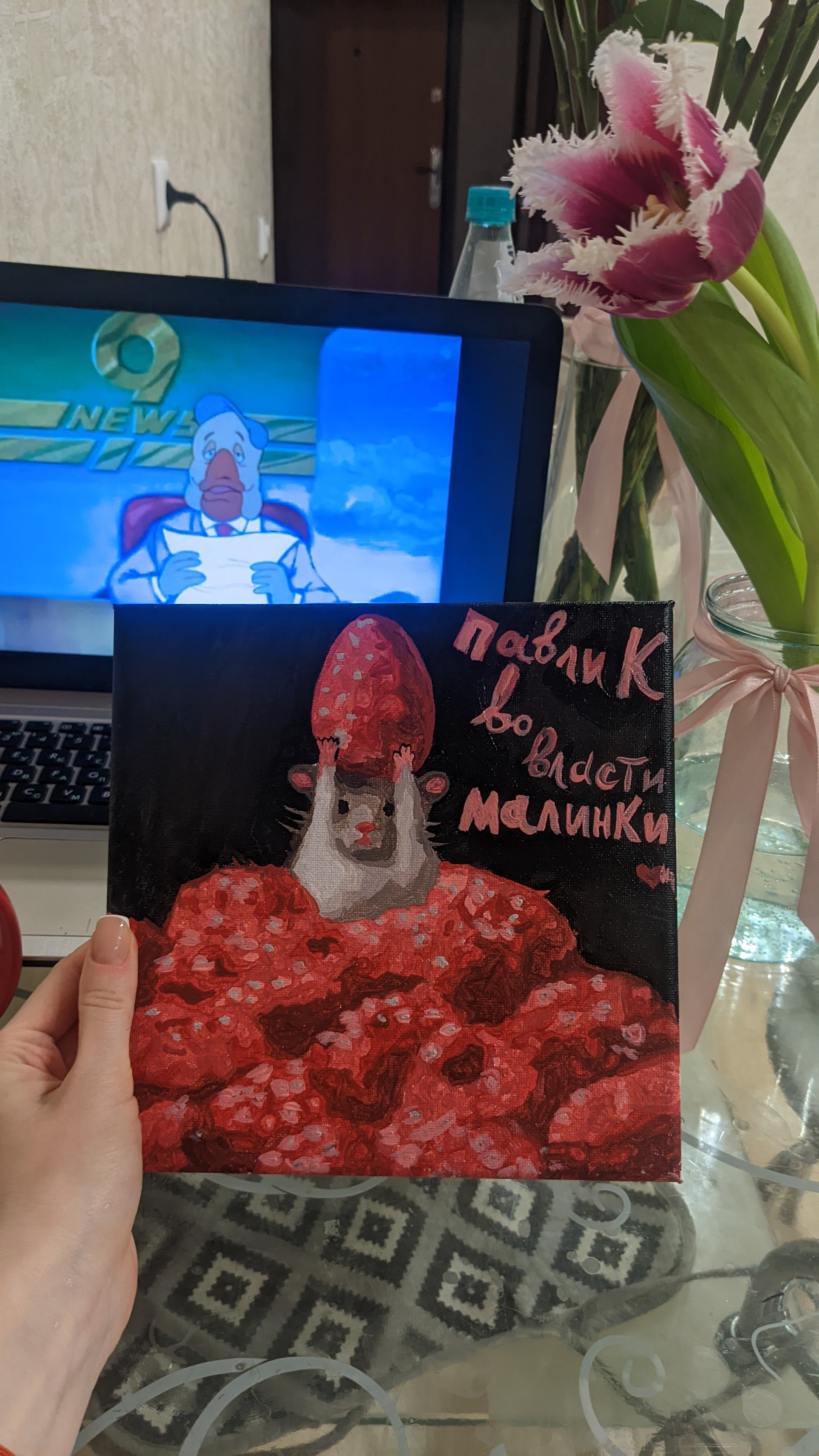 Как только увидела эту картину, поняла что она станет лучшим подарком!! Красочная и яркая, и такая бомбическая мышь. Просто любовь :)️