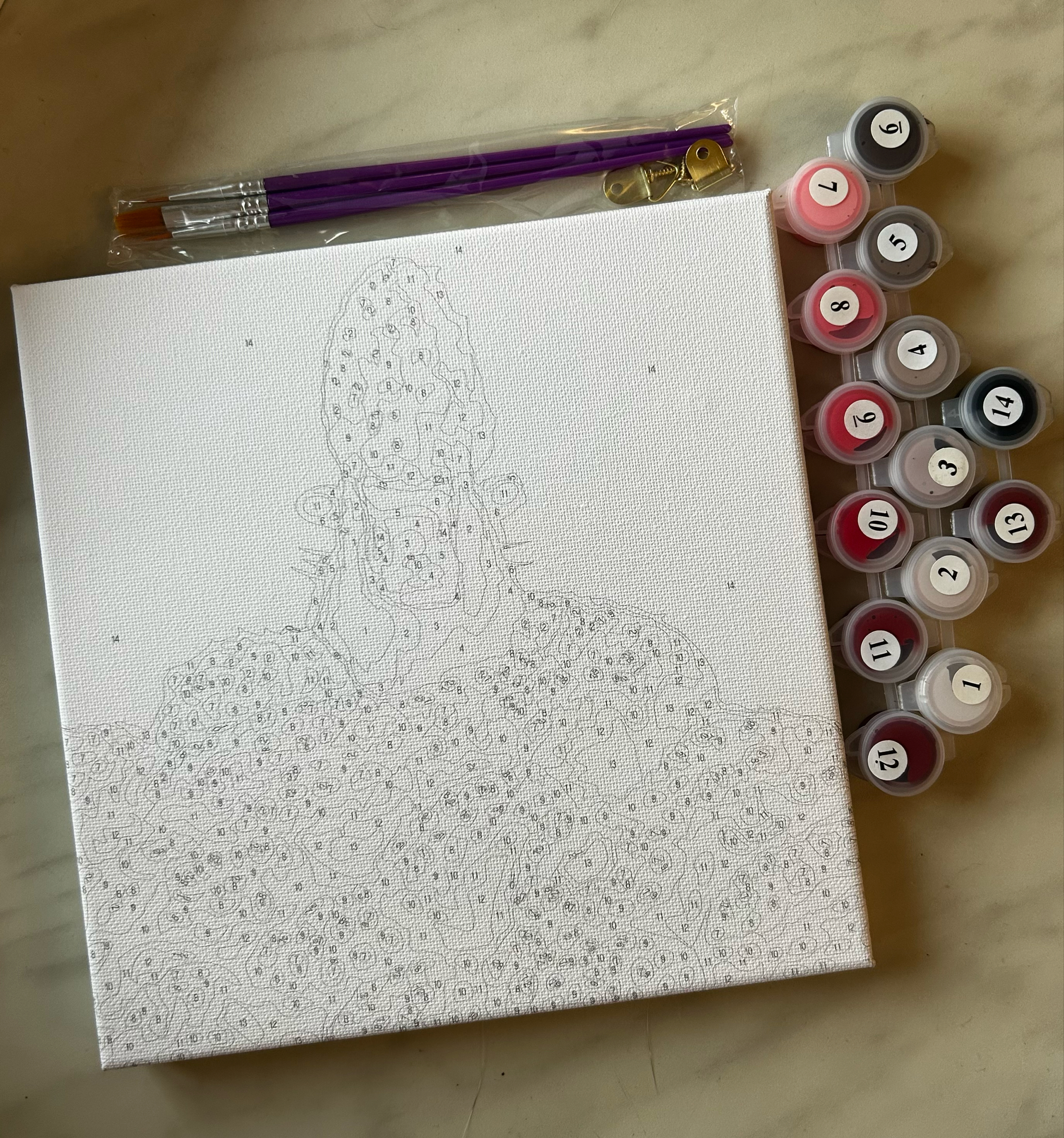 В набор входит холст с черно-белой цифровой разметкой. Каждой краске в наборе соответствует свой номер. Необходимо просто аккуратно нанести краски на участки с соответствующими цифрами. И так постепенно будет проявляться будущий шедевр.