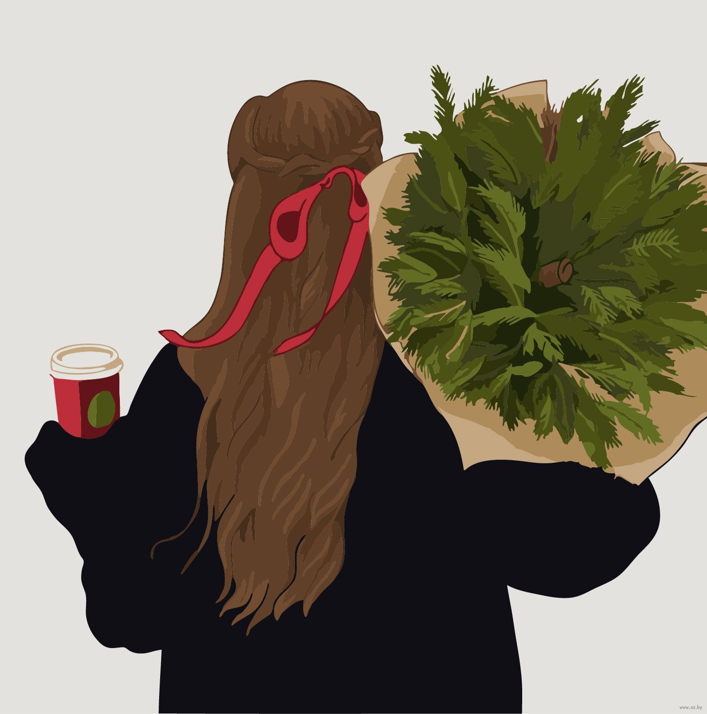 Картина по номерам "Еловые веточки" (200х200 мм)
