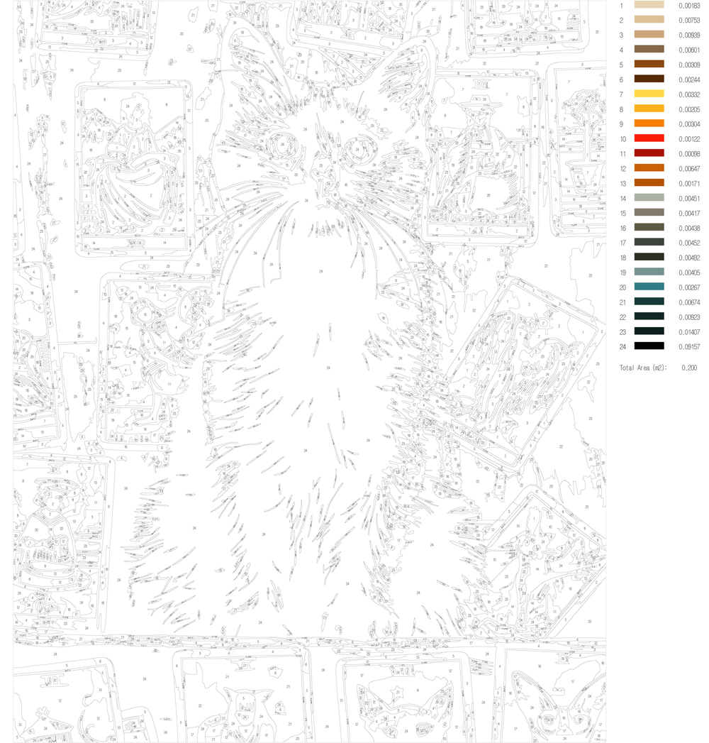 В набор входит холст с черно-белой цифровой разметкой. Каждой краске в наборе соответствует свой номер. Необходимо просто аккуратно нанести краски на участки с соответствующими цифрами. И так постепенно будет проявляться будущий шедевр.
