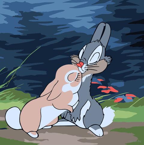 Картина по номерам "Милые зайчики" (200х200 мм)