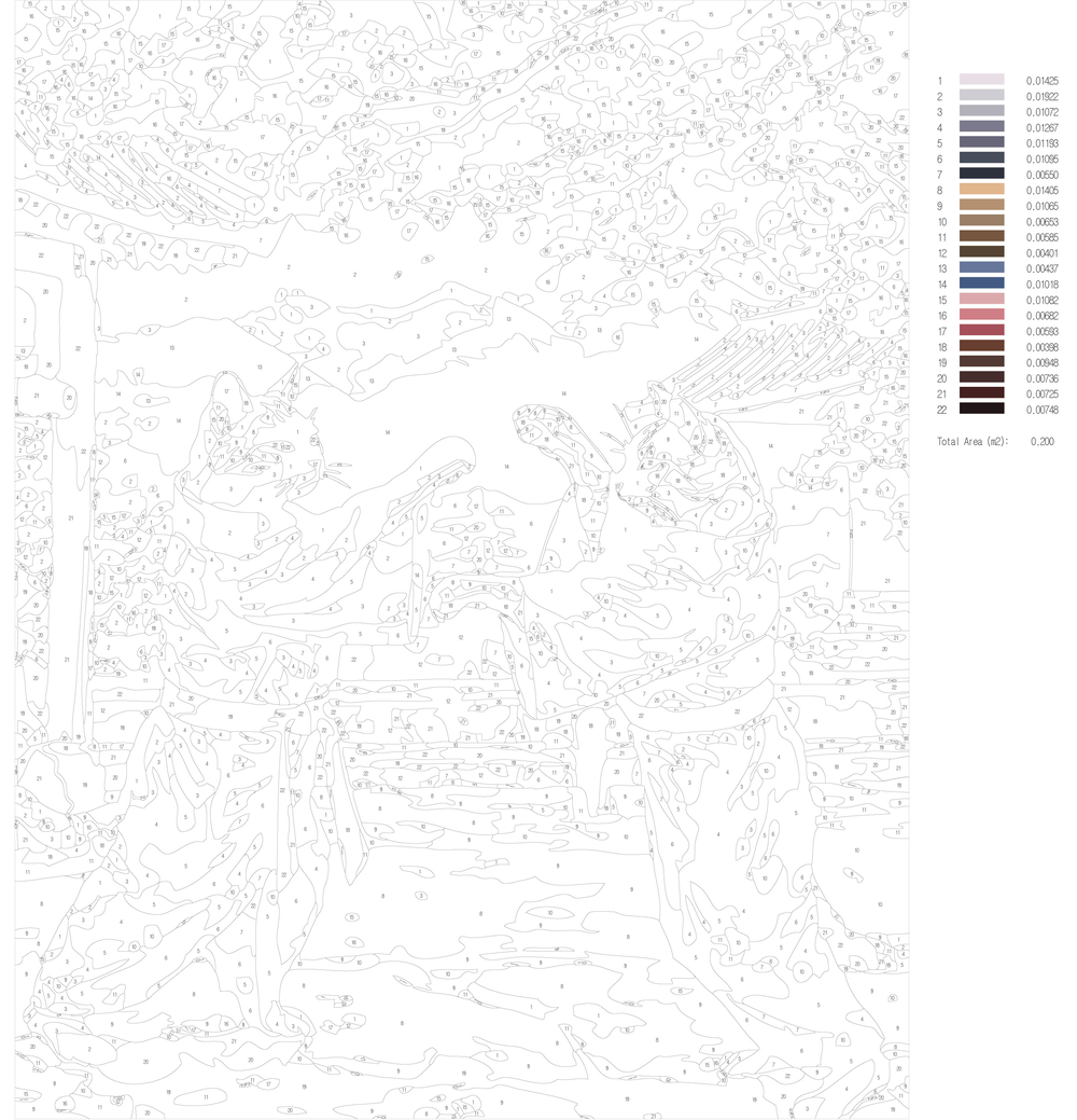 В набор входит холст с черно-белой цифровой разметкой. Каждой краске в наборе соответствует свой номер. Необходимо просто аккуратно нанести краски на участки с соответствующими цифрами. И так постепенно будет проявляться будущий шедевр.