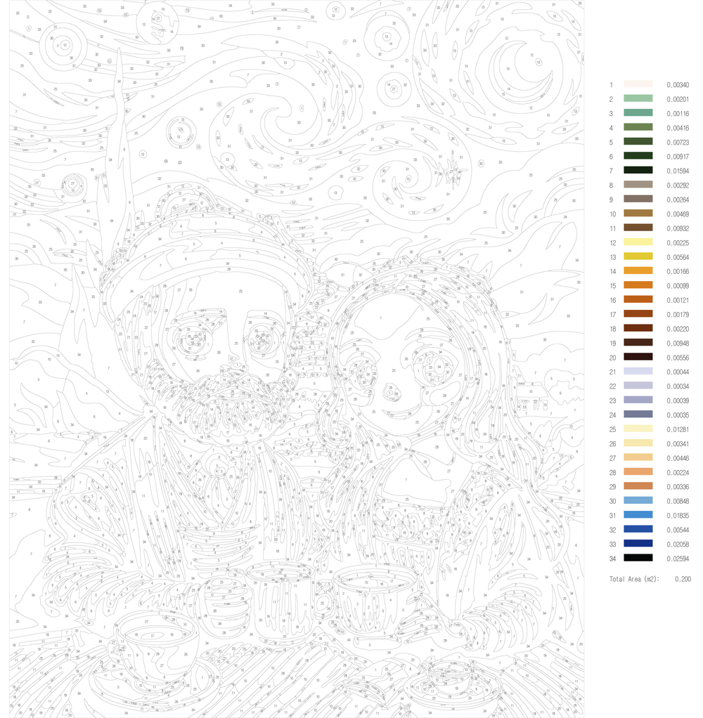 В набор входит холст с черно-белой цифровой разметкой. Каждой краске в наборе соответствует свой номер. Необходимо просто аккуратно нанести краски на участки с соответствующими цифрами. И так постепенно будет проявляться будущий шедевр.