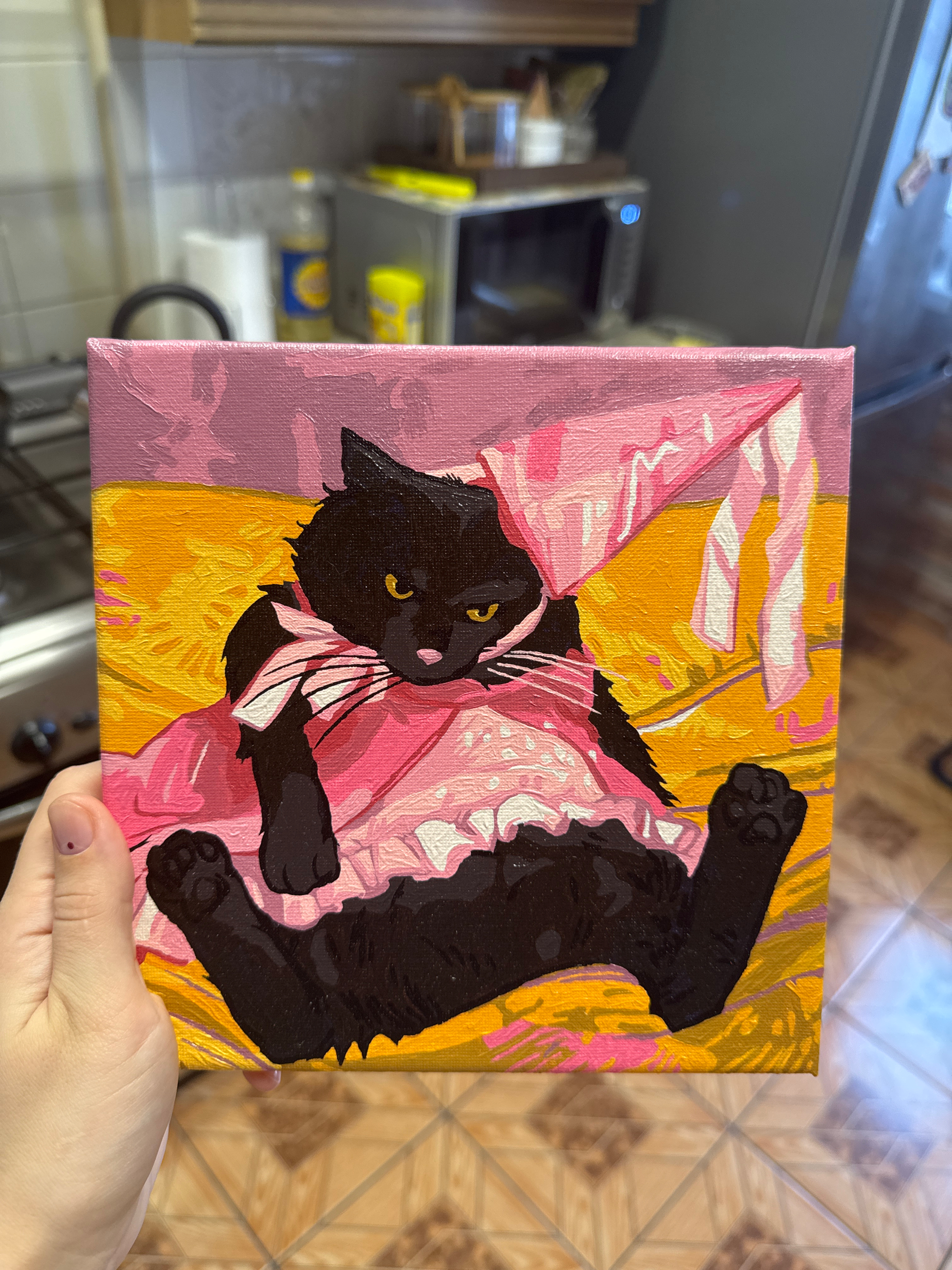 Моя 5а по счёту картина. Очень быстро нарисовала, впервые брала 20на20см) чтобы не перекрашивать несколько раз одни и те же участки (особенно циферки - чтобы не просвечивали) - я не мочу кисть, а рисую сразу густо краской. Тогда даже эффект создается более «живой» картины с этими мазками :)