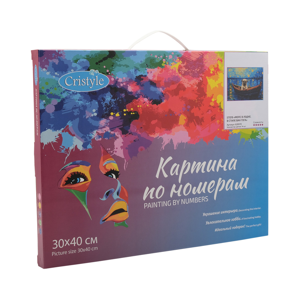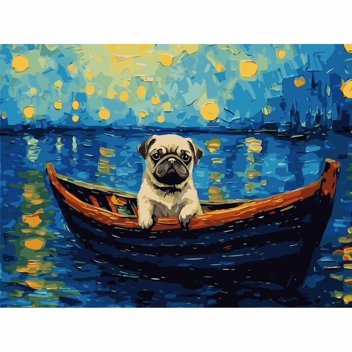 Набор для рисования по номерам "Мопс в лодке. В стиле Ван Гога" от Cristyle – это прекрасная возможность не только попробовать себя в роли художника, но и провести время за увлекательным и расслабляющим занятием.
