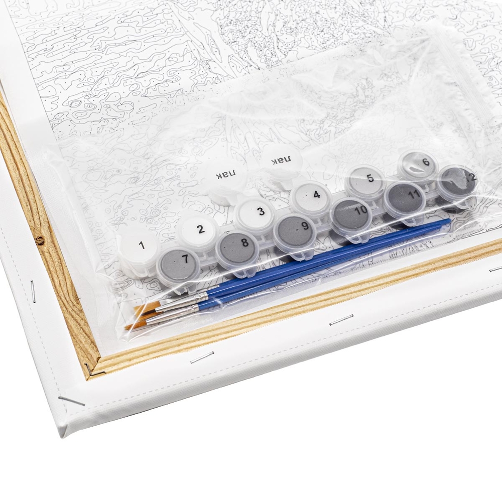 В набор входят акриловые краски – они яркие, стойкие и быстро высыхают. Краски из акрила плотные, отличаются хорошей кроющей способностью, не содержат токсичных веществ и безопасны даже для детей. Эффект настоящей живописи завершает холст с галерейной натяжкой.