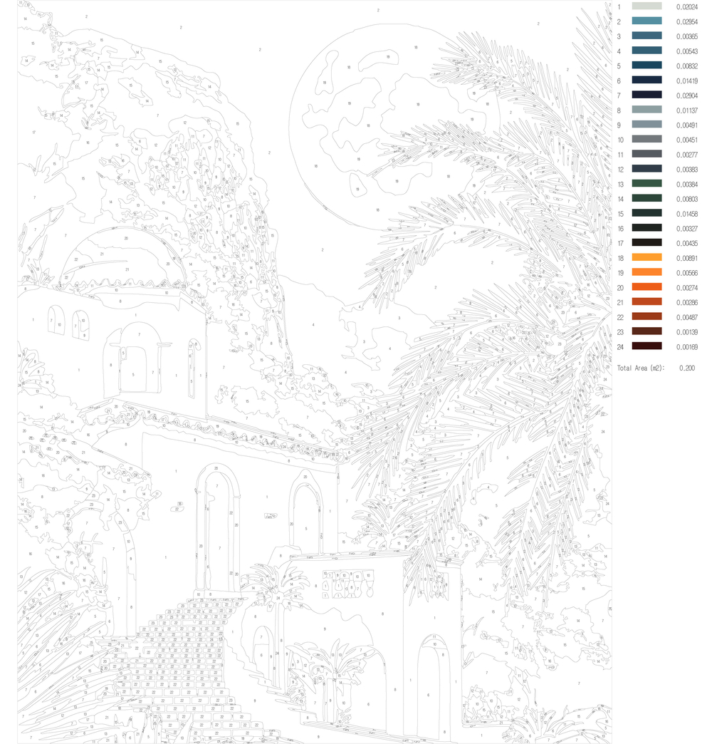 В набор входит холст с черно-белой цифровой разметкой. Каждой краске в наборе соответствует свой номер. Необходимо просто аккуратно нанести краски на участки с соответствующими цифрами. И так постепенно будет проявляться будущий шедевр.