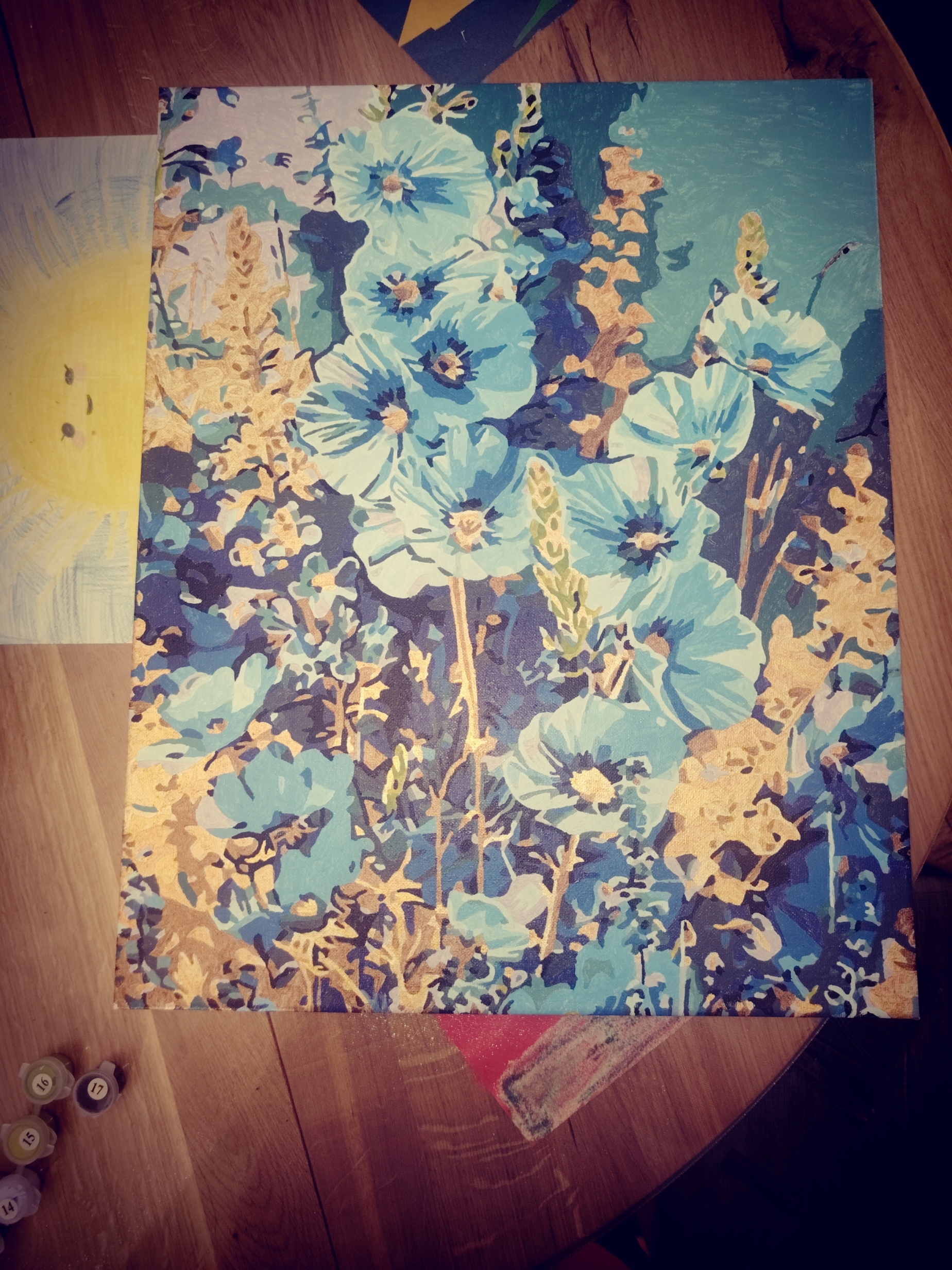 Картина по номерам с золотыми красками "Синие лепестки" (400х500 мм)