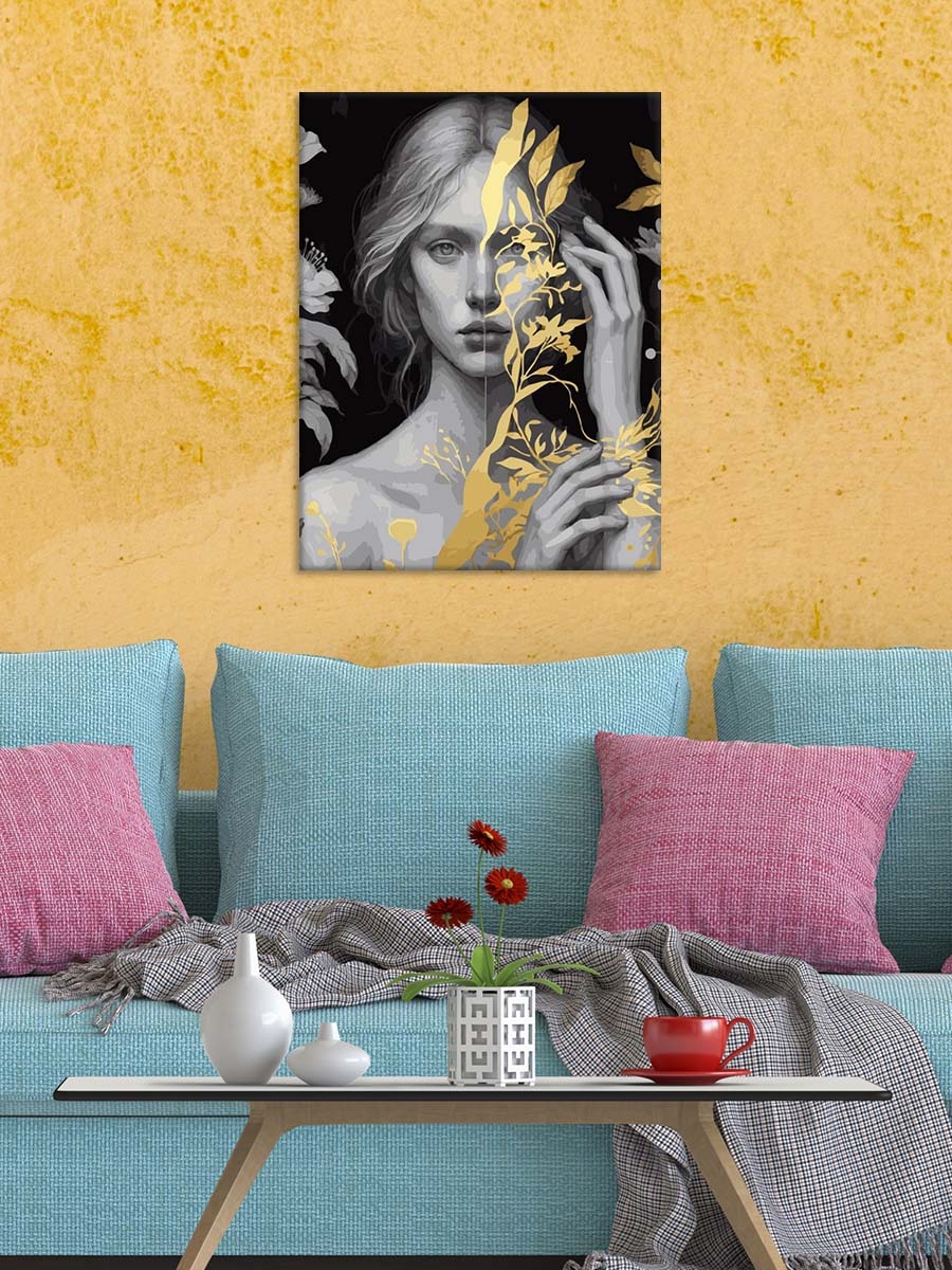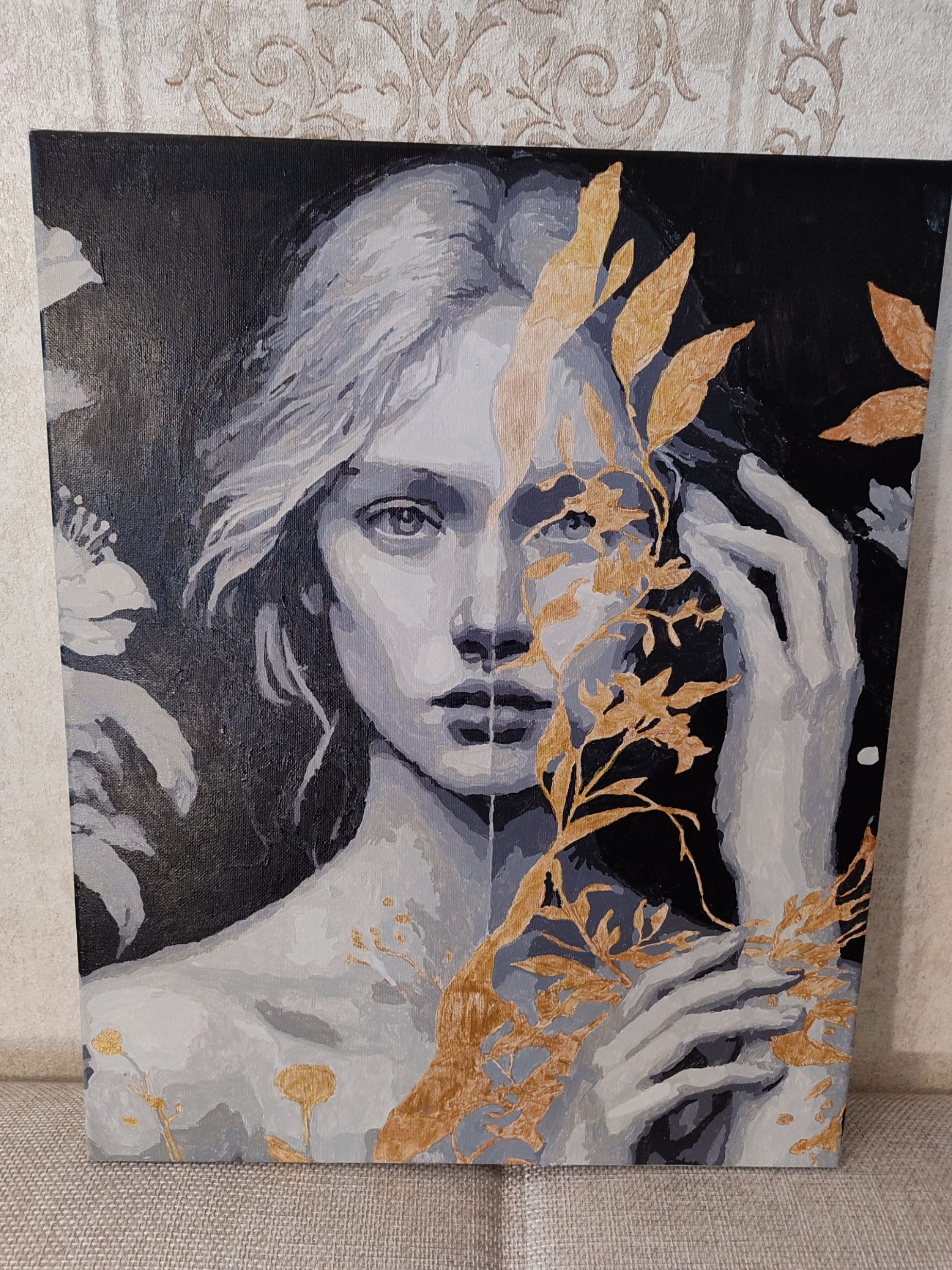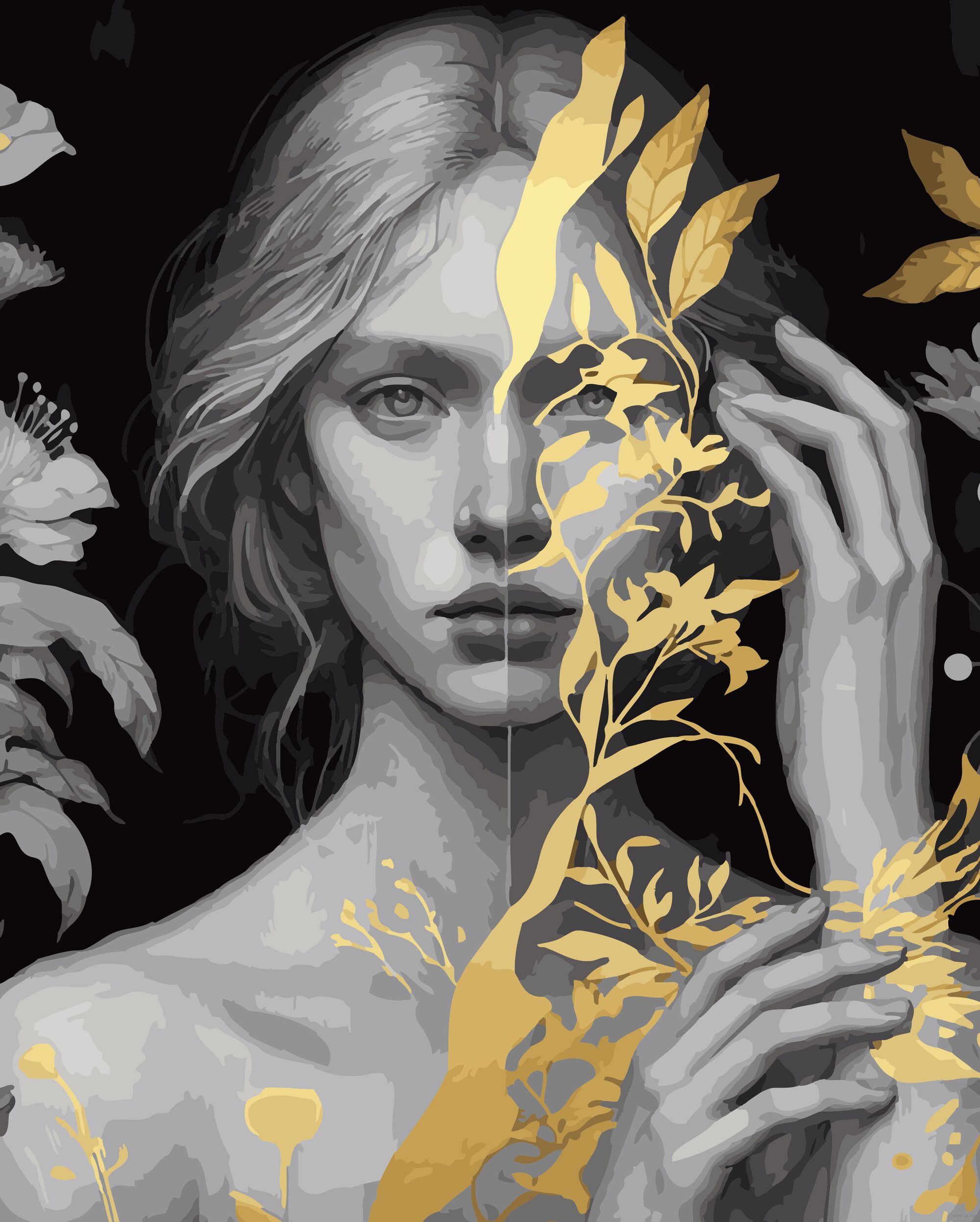 Картина по номерам с золотыми красками "Чёрно-золотой портрет" (400х500 мм)