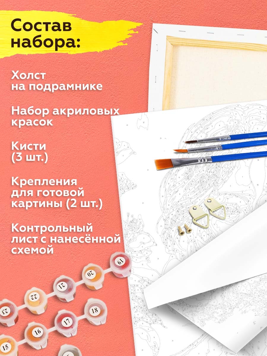 В набор входит холст с черно-белой цифровой разметкой. Каждой краске в наборе соответствует свой номер. Необходимо просто аккуратно нанести краски на участки с соответствующими цифрами. И так постепенно будет проявляться будущий шедевр.