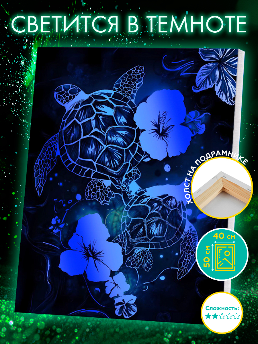 Картина по номерам c люминесцентной краской "Синие черепашки" (400х500 мм)