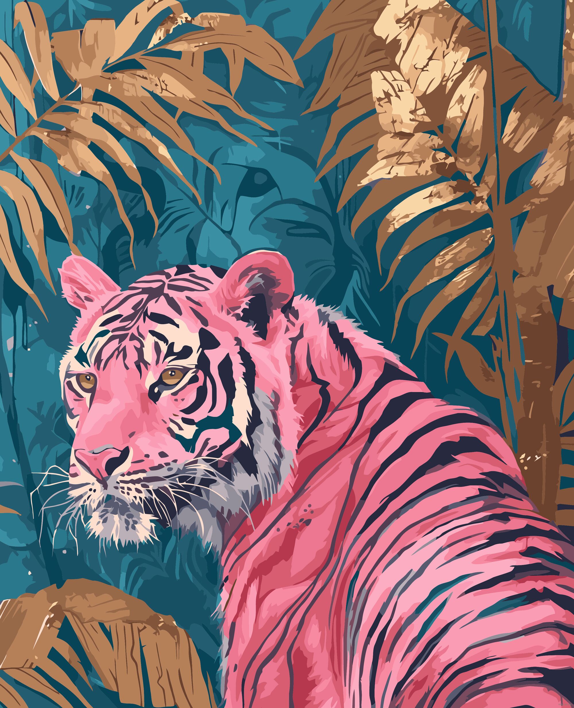 Картина по номерам с золотыми красками "Розовый тигр" (400х500 мм)