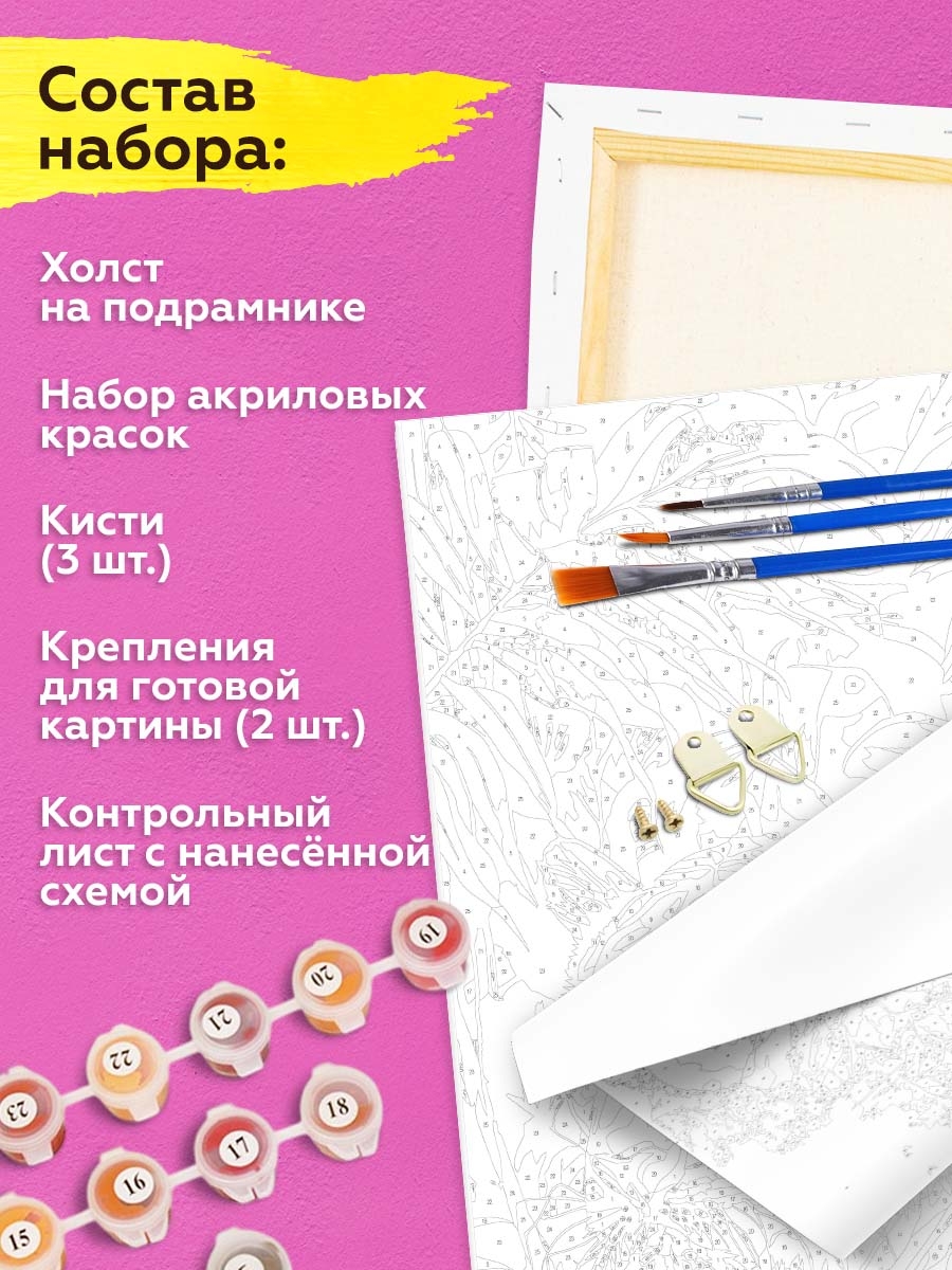 В набор входит холст с черно-белой цифровой разметкой. Каждой краске в наборе соответствует свой номер. Необходимо просто аккуратно нанести краски на участки с соответствующими цифрами. И так постепенно будет проявляться будущий шедевр.