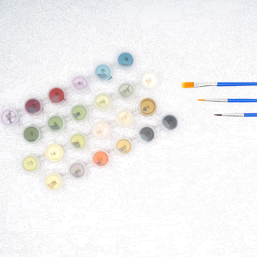 Внутри набора вы найдете холст с нанесенным контуром будущего шедевра. Каждый участок холста имеет свой номер, соответствующий номеру краски в специальной баночке. Вам остается лишь раскрасить каждый сектор, используя ту краску, которая указана для данного номера. Этот процесс не требует никаких дополнительных действий, таких как смешивание или разбавление красок. Рисование по номерам – это простой и увлекательный способ приобщиться к миру искусства.