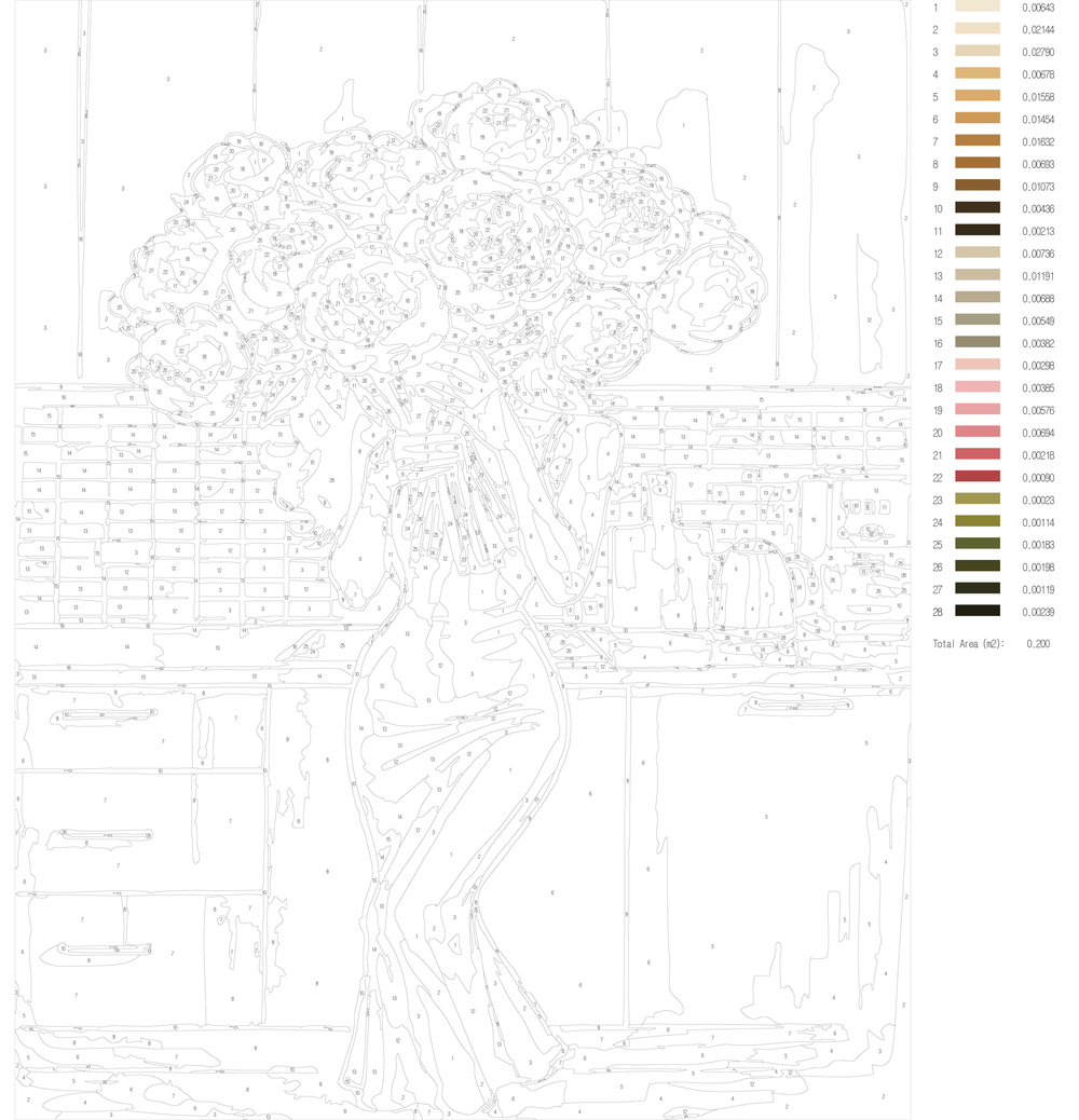 В набор входит холст с черно-белой цифровой разметкой. Каждой краске в наборе соответствует свой номер. Необходимо просто аккуратно нанести краски на участки с соответствующими цифрами. И так постепенно будет проявляться будущий шедевр.