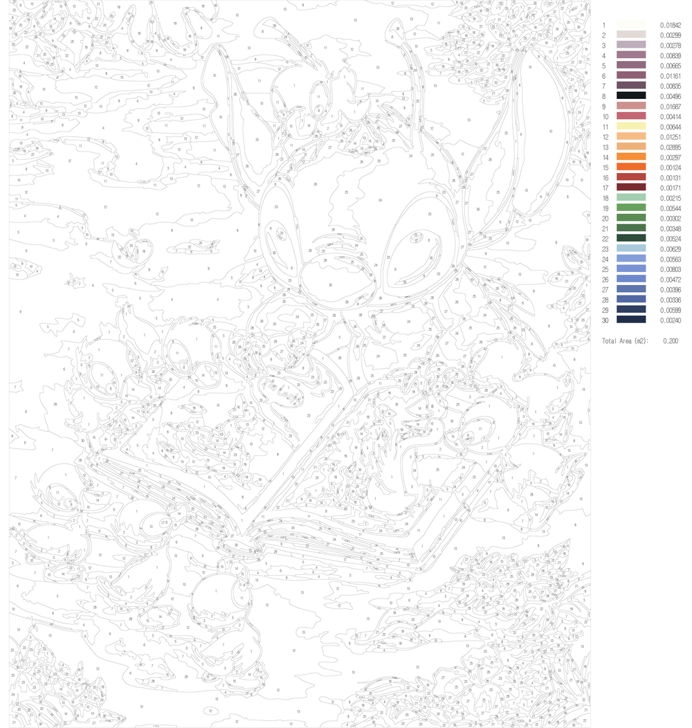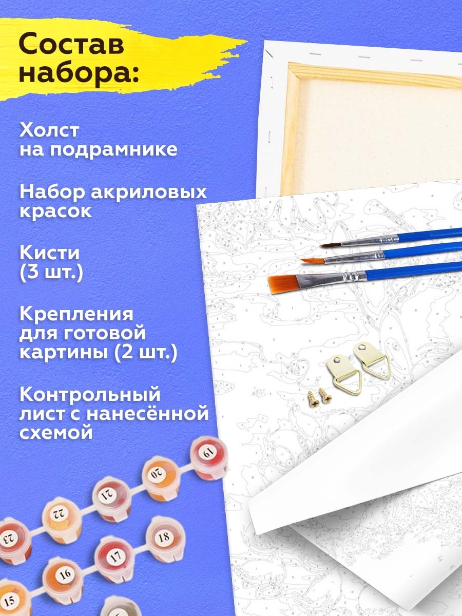 В набор входит холст с черно-белой цифровой разметкой. Каждой краске в наборе соответствует свой номер. Необходимо просто аккуратно нанести краски на участки с соответствующими цифрами. И так постепенно будет проявляться будущий шедевр.